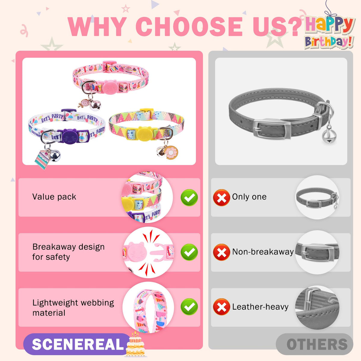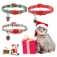 Scenereal Christmas Breakaway Cat Collar With Bells, Safety Buckle Soft Adjustable Cats Collars For Daily Wearing, Kitten Puppy
