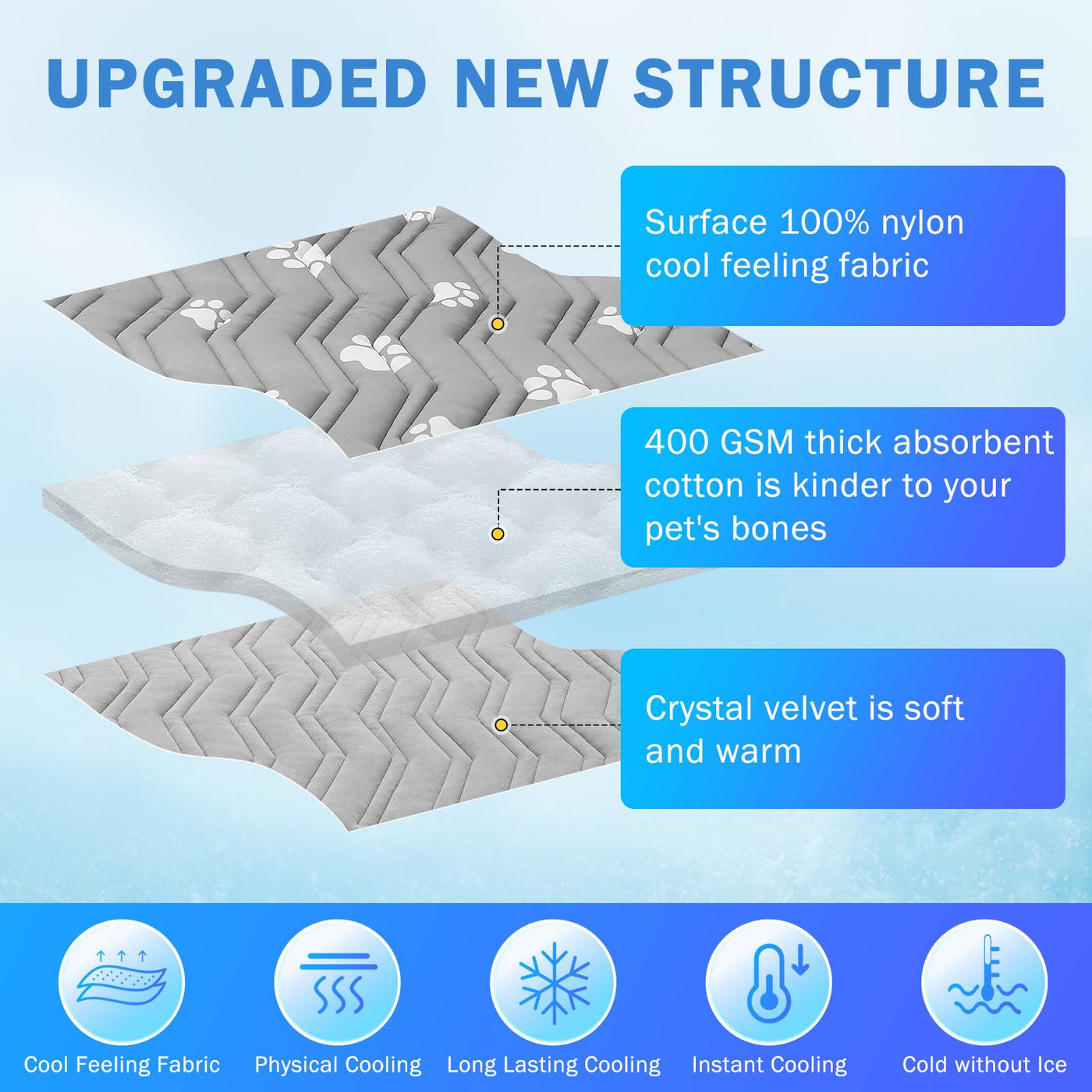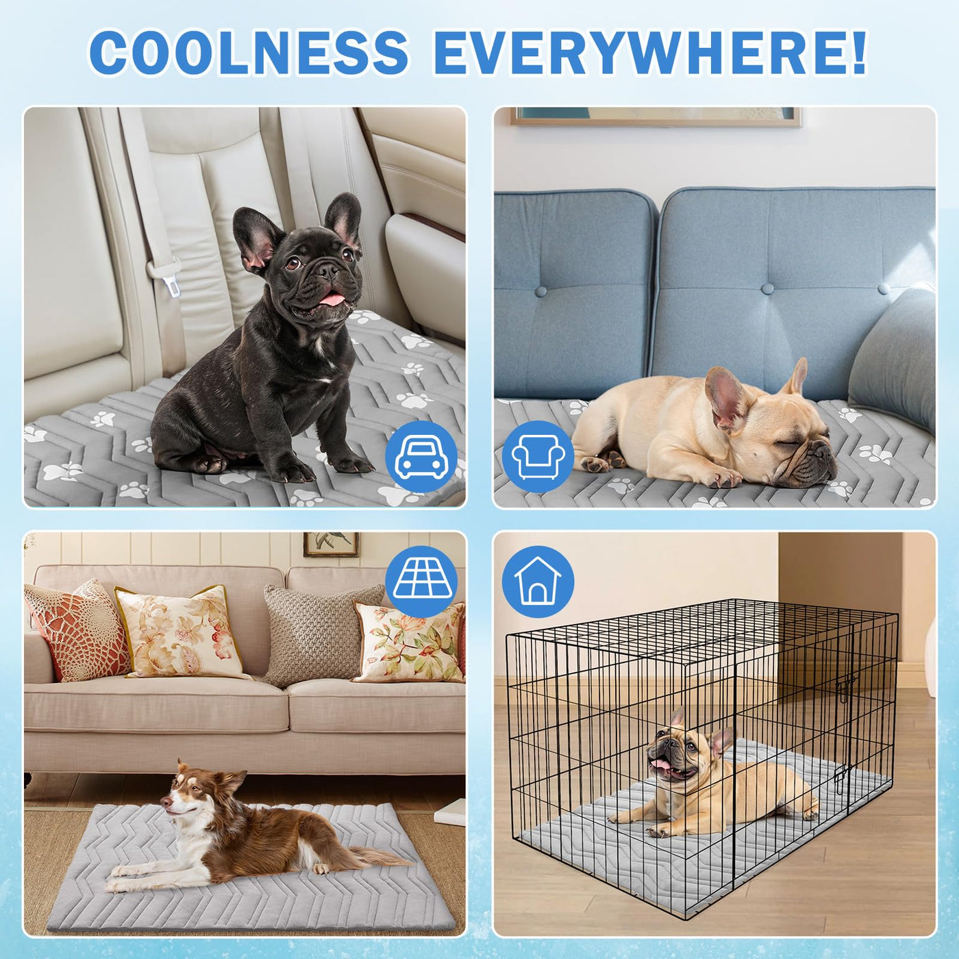 Scenereal Dog Cooling Mat For Crate, Thicken Self-Cooling Dog Pad Reversible (Cool & Warm), 48''X28'' Pet Cool Bed For M Large X