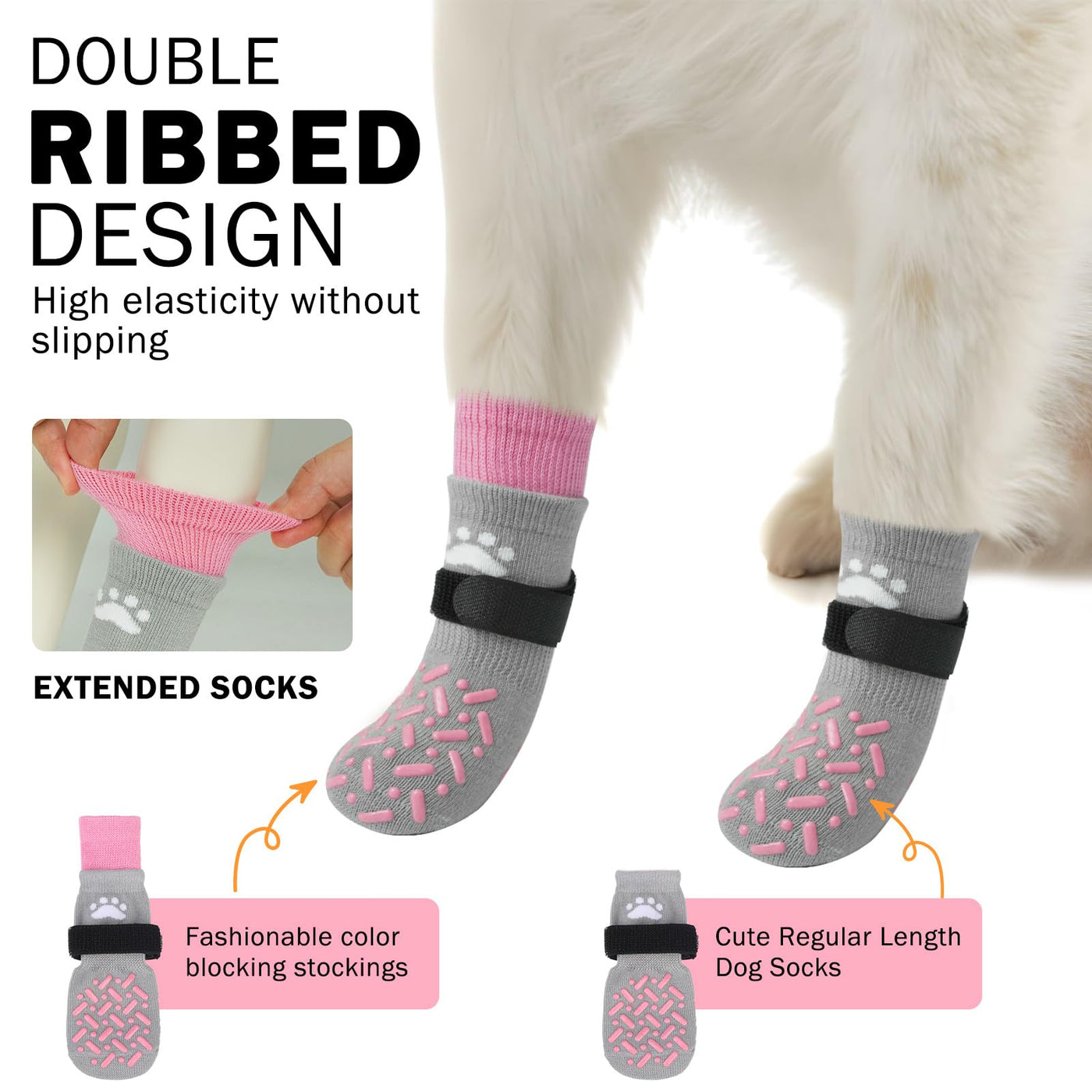 Scenereal Dog Socks To Prevent Licking Paws For Hardwood Floors, Anti Slip Long Dog Grip Socks For Cold/Hot Pavement, Dog Shoes