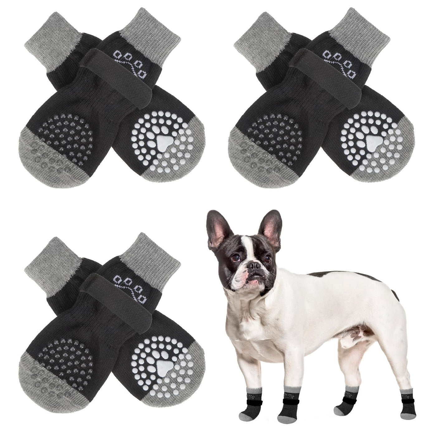 High-quality Fabric: The dog socks are made of soft and comfortable fabric lightweight and breathable. They are printed with a cute paw pattern and have detachable and adjustable strips