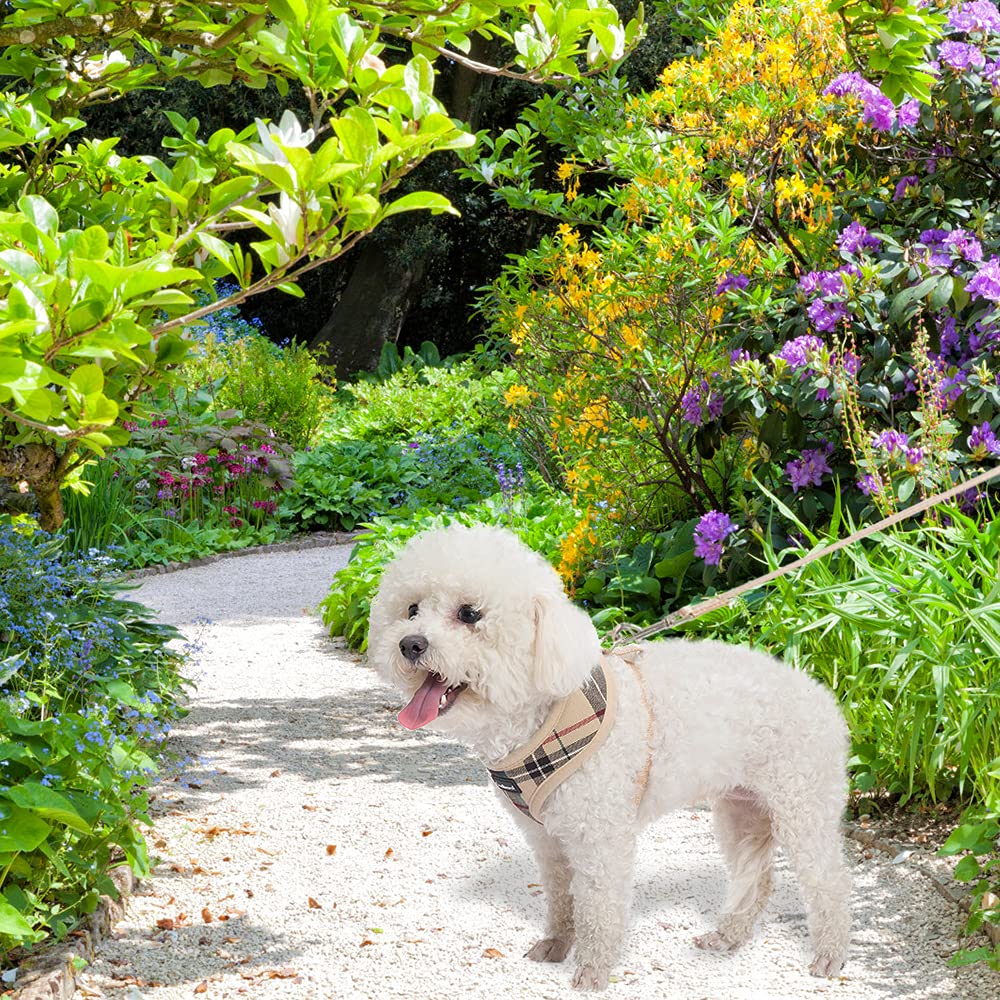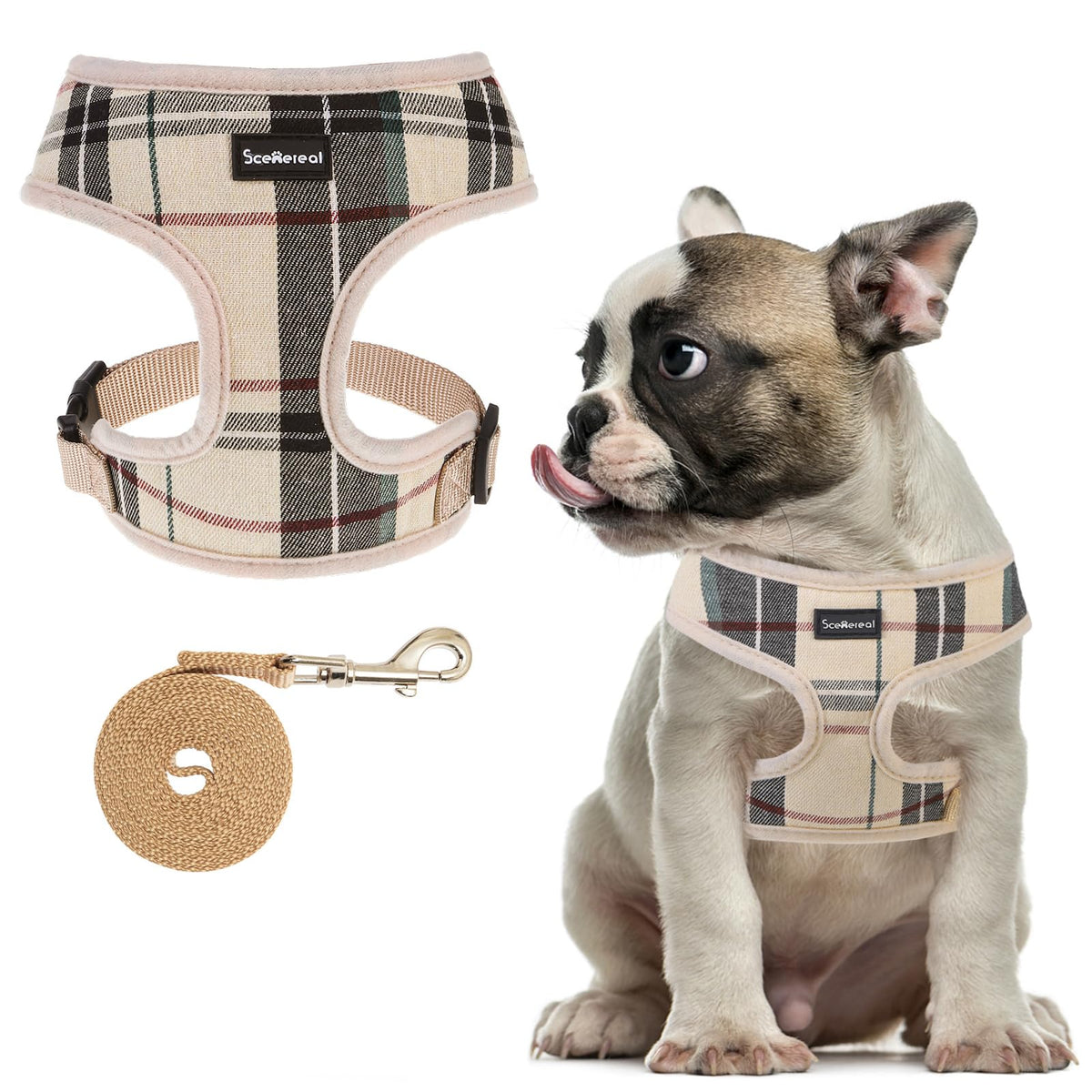 Scenereal Puppy Dog Harness With Leash Set For Small Medium Sized Dogs, Soft Mesh Step In Pet Harnesses And Leash, No Chock Plaid Adjustible No Pull Vest For Dogs Cats, Chihuahua,Bulldog (Beige M)