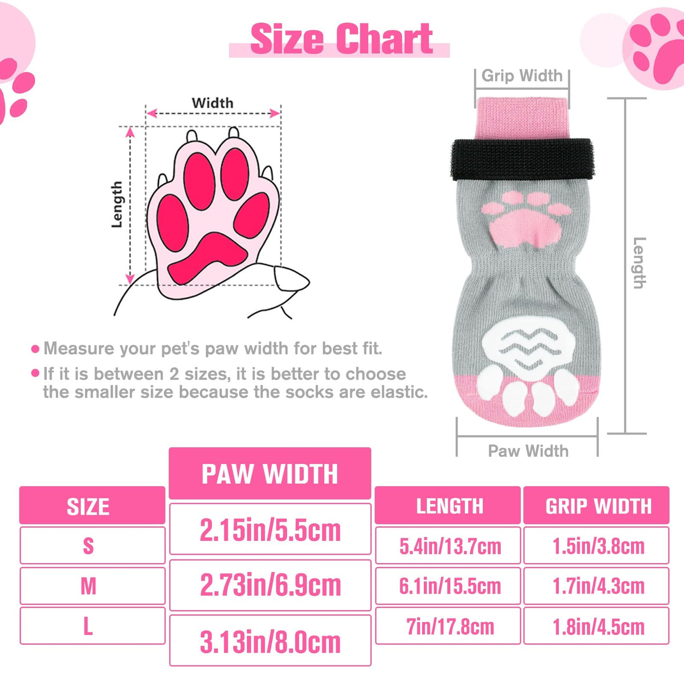 Scirokko 3 Pairs Anti-Slip Dog Socks - Adjustable Pet Non-Slip Paw Protection With Pink Paw Pattern For Puppy Doggy Indoor Traction Control Wear On Floor
