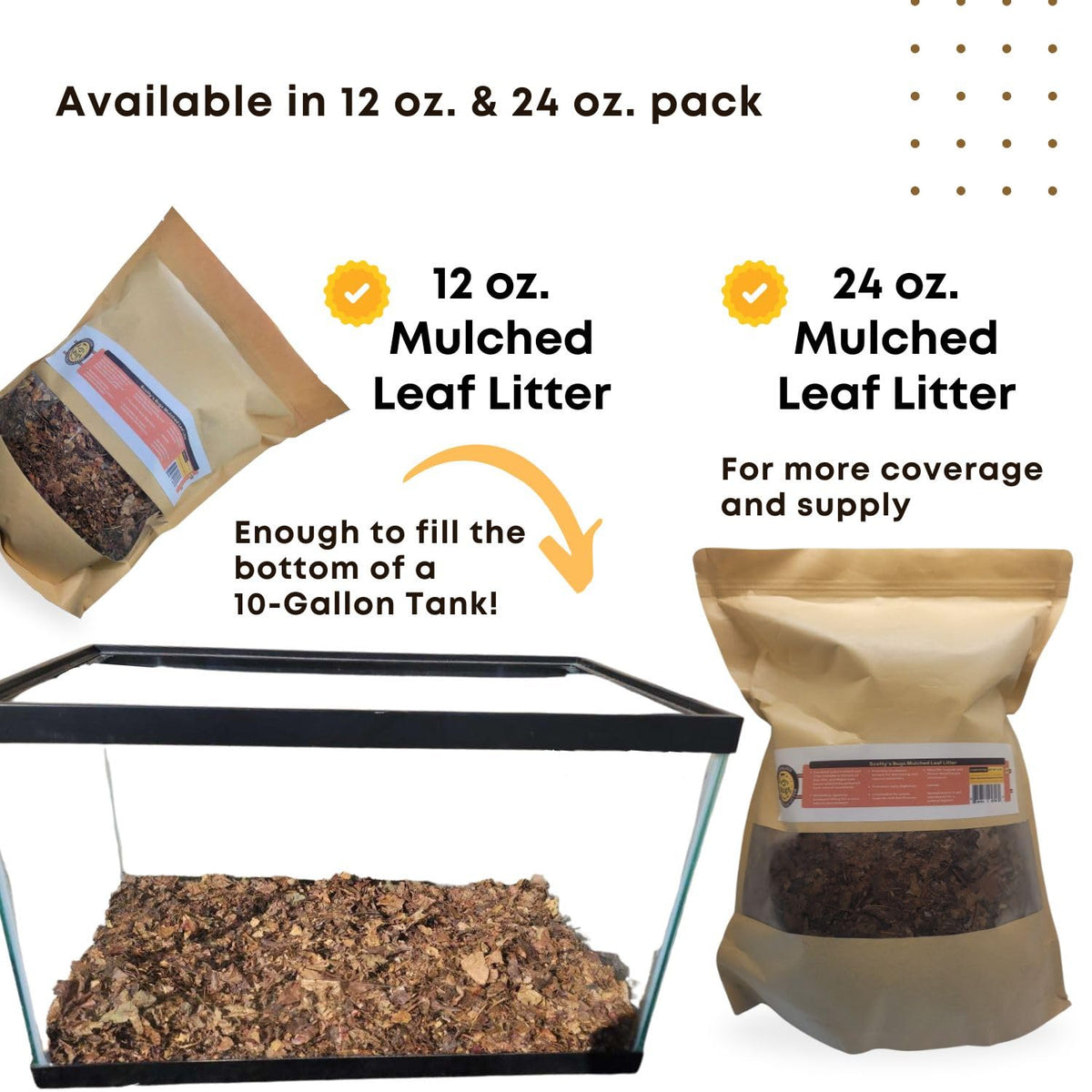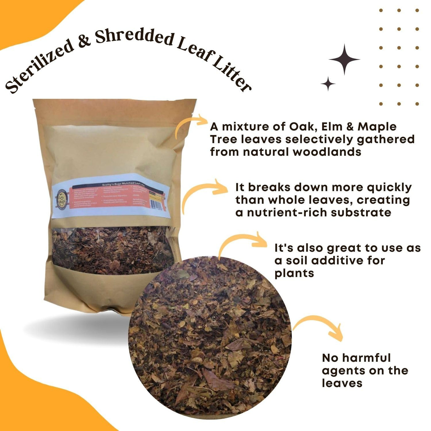 Sterilized, Clean & Natural: Leaf Litter Collected From Natural Woodlands Is Sterilized To Provide A High-Quality, Organic Substrate For Your Reptiles, Isopods, And Amphibian Pets To Thrive In A Forest-Like Habitat. The Mixture Includes Elm, Maple, And Oak Leaves.