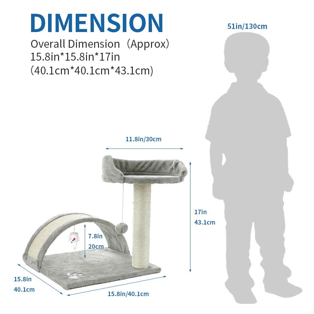 Q: What are the dimensions of the ScratchMe Cat Tree?A: The dimensions of the ScratchMe Cat Tree are 15.8 inches in length, 15.8 inches in width, and 17 inches in height, making it a compact yet functional addition to your home.
