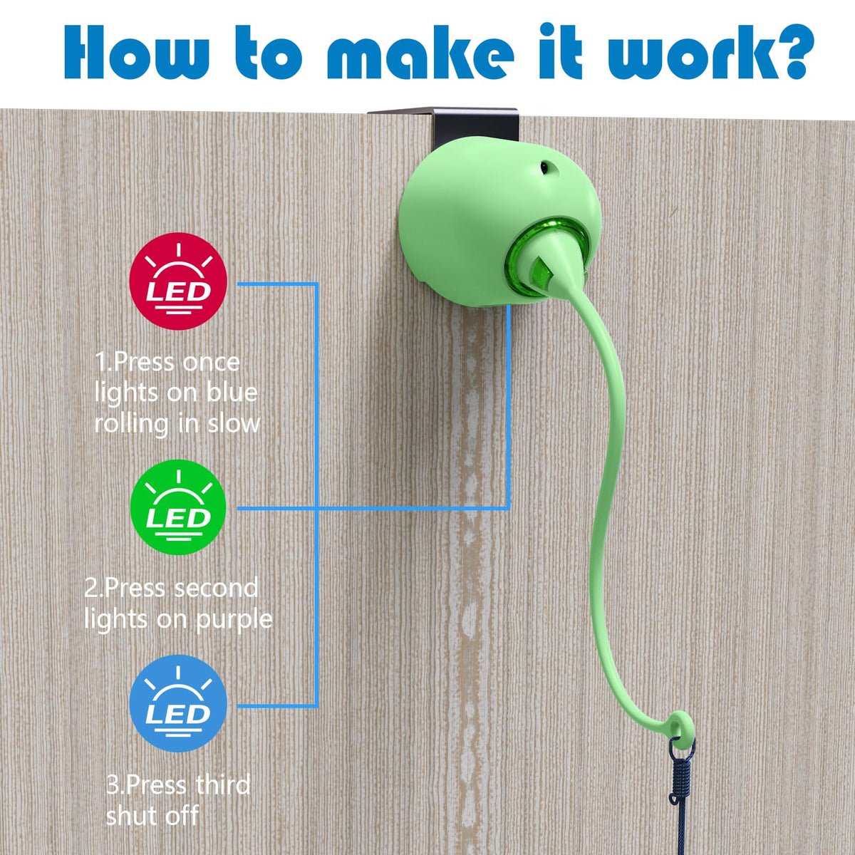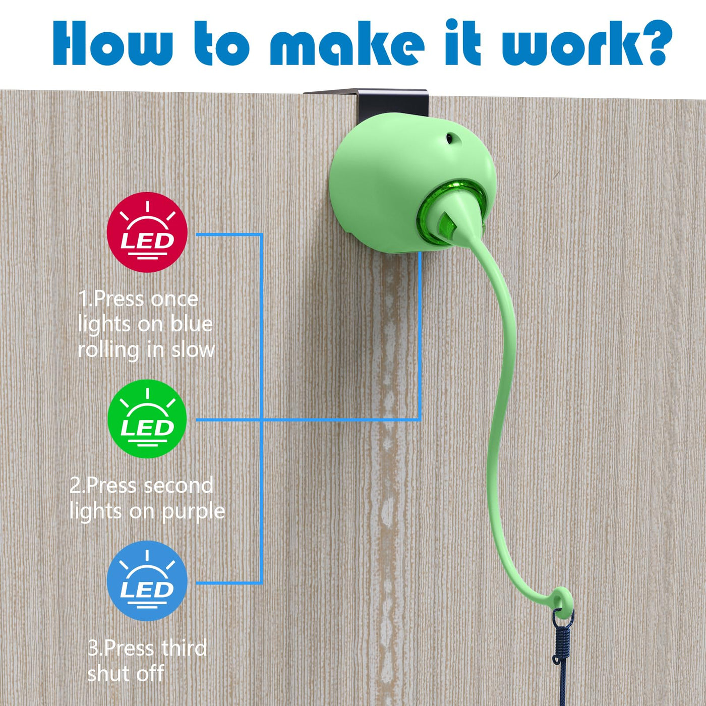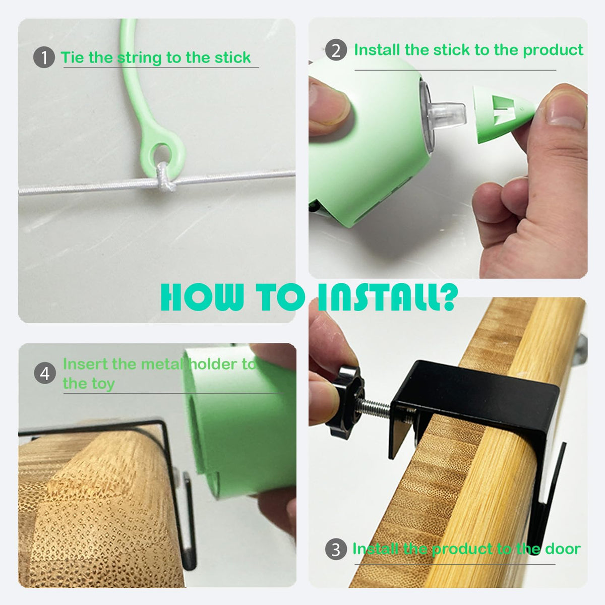 The Aukl Cat Toy Hangs On The Door And Automatically Rotates The Feathers To Simulate The Movements Of A Manually Interacting Cat. Runs For 10 Minutes And Switches Off Automatically Automatic Door Frame Cat Toy Will Restart Play After 2 Hours On Standby. Shake And Twirl The Tail To Entice Your Baby To Chase The Flying Feathers, And The Elasticated Cord Adds To The Fun. Exercise Your Cat At Home Choose Between Slow And Fast Speeds And Simply Change Modes With The Power Button. The Different Speeds Are Suitable For Shy Kittens Or Active Adult Cats. Slow Mode Is Recommended For The First Trial Rechargeable Cat Toy Will Be Fully Charged In 2-3 Hours. Programming The Toy To Work For 5 Minutes And Standby For 120 Minutes Will Help Kittens To Rest After Exercise. Iron Plate Mounted On The Door, Stronger Than Suctio Cups. Whether Your Door Is Open And Closed. Kittens Can Be Entertained With Aukl Cat Toys Hanging From The Door. See Pictures On How To Install Package Comes With 2 Small Feathers And Bell, Add Any Accessories If Desired. Excessively Heavy Tail Will Slow Down The Rolling Speed. Manufacturer Support - 12 Month Warranty And 24 Hour Online Service Translated With Deepl.Com (Free Version)