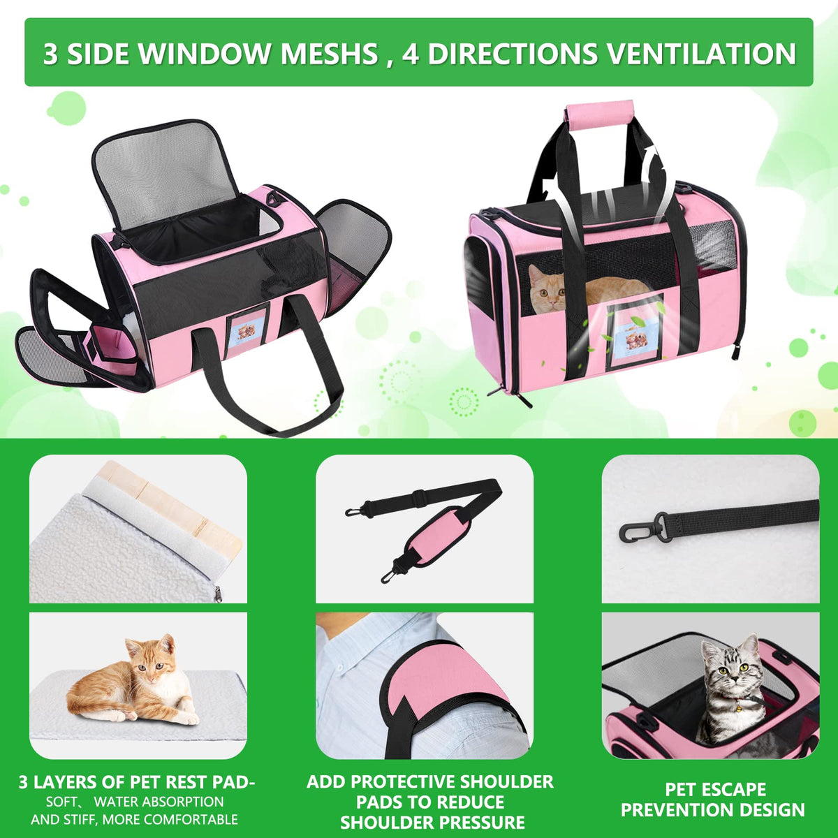 Seclato 20' Large Cat Carrier Soft Sided Carrier For Cats Under 25 Lbs, Folding Dog Carrier 20' Carrier For 2 Cats Travel Carr