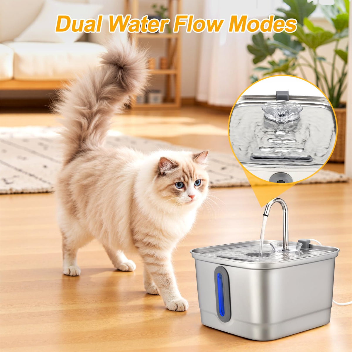 Seirmep Stainless Steel Cat Water Fountain, 101Oz/3L Automatic Pet Water Fountain, Dog Water Fountain With Replacement Filters F