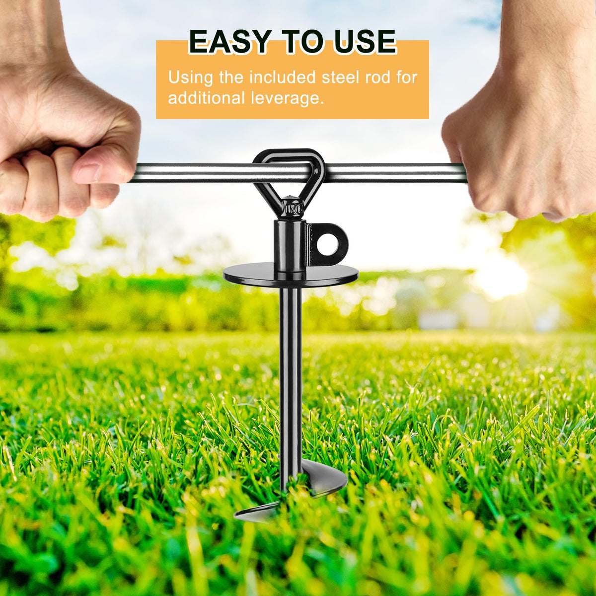 Seleware Dog Tie Out Stake Outdoor Anti-Rust Ground Anchor For Large Dogs Up To 220 Lbs, Free Swivel Dog Stake Dog Camping Gear