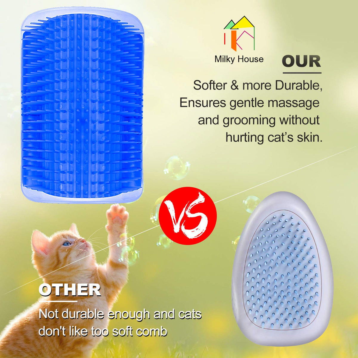 CATS LOVE CLEAN, THEY ALWAYS CLEAN THEMSELVES BY COMBING THEIR HAIR, AND ENJOY THE CARESS OF YOURS! ?But sometimes you are busy with your work and have no time to play with your cats and dogs or help them comb their hair. The self groomer brush can help you to solve these problems very well. When you are busy with other things, the kitty and puppy can also entertain themselves, and the hair does not need to be cleaned frequently. It helps to manage the hair and make the pet's hair more smooth and shiny. You can concentrate on your work, greatly reducing your burden!