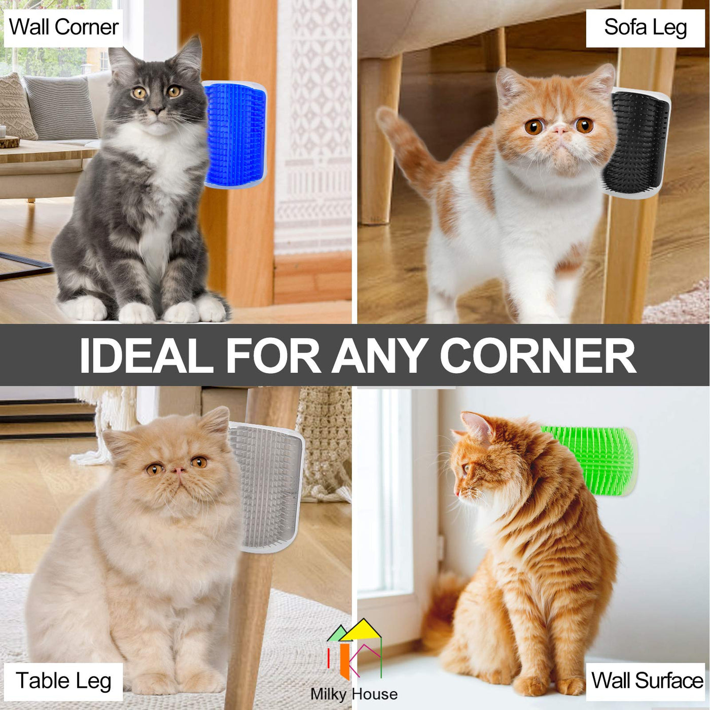 ???Feature:??? ?1. Meet the cat's life habits. You can install a catnip to soothe kittens and make them excited. ?2. It can be installed in any corner of the house. The upgraded version of grooming can be installed on a flat surface or at a corner. Suitable for walls and furniture. It can be installed according to the height of the cat. ?3. Humanized design, the product comes with 4 double-sided tapes and 4 screws. You can choose the installation method according to your needs. ?4. Suitable for all pets, it is the best scratcher toy for pets. Let kittens and puppies entertain themselves and increase the fun in life. ?5. Help collect hair, make cleaning more convenient.