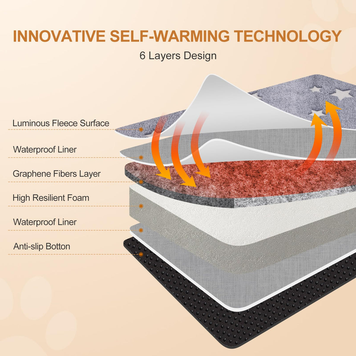 Self Warming Dog Bed Mat, 30''X20'' Graphene & Glow-In-The-Dark Fabric Dog Crate Mat, Removable Washable Cover Anti-Slip Bottom