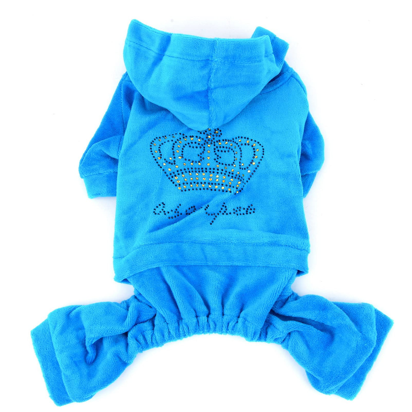 Selmai Dog Jumpsuit Hoodie Sweatshirt Dog Fleece Sweater Coat Small Pet Clothes Rhinestone Crown Blue M