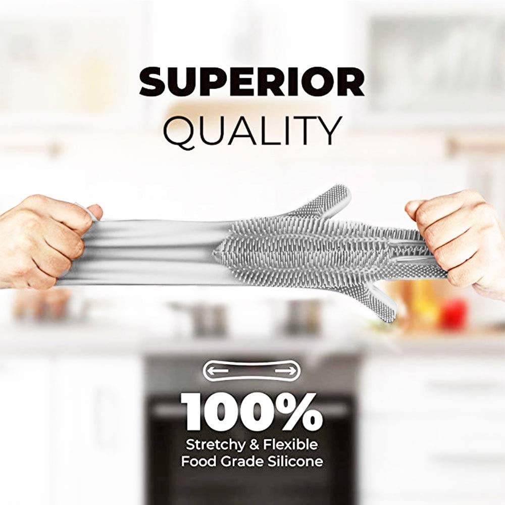 Q: What is the temperature tolerance of the silicone gloves?A: The gloves can withstand high temperatures up to 240 degrees Celsius and low temperatures down to -40 degrees Celsius, making them safe for various cleaning tasks.