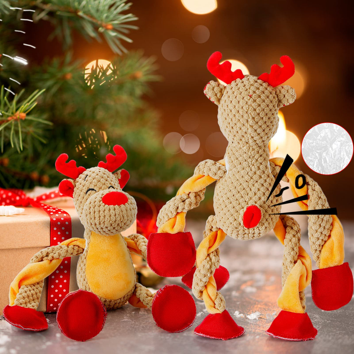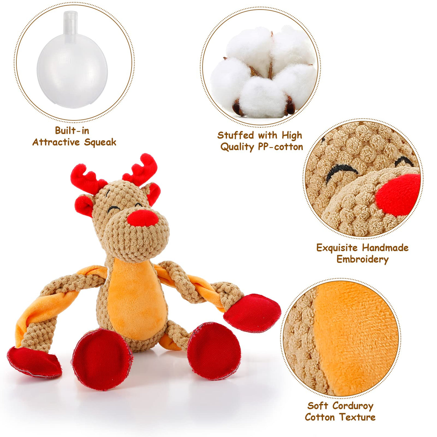 Senneny Dog Christmas Toys With Squeaker, Reindeer Squeaky Toys For Dogs Puppy, Stuffed Dog Plush Toy For Small Medium Dogs, Int