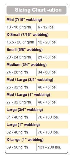 The original SENSE-ation Harness is a no-pull dog harness that works wonders for positive reinforcement dog training, or just taking gentler walks with your pooch. An instruction booklet comes with all SENSE-ation Harnesses. The SENSE-ation is similar to the SENSE-ible Harness in design, however the SENSE-ation uses a custom Softouch polyester webbing for added comfort. The SENSE-ation Harness also features Duraflex plastic hardware, instead of metal. The O-rings on the chest and sides are nickel plated steel for extra durability. The curved side-release buckle and strap keepers are a plus. The girth strap, also called a 'belly strap' comes in a coordinating color, making it easy to identify, and therefore easier to put on. The SENSE-ation Harness stops your dog from pulling, without choking, stress or otherwise harming your pet. You can use i right away - there is no acclimation period. Best of all, the SENSE-ation Harness is a favorite of positive reinforcement dog trainers and humane societies worldwide. Awarded 'Gear of the Year' by The Whole Dog Journal, 2003. Using a flexible measuring tape, measure from just behind the front legs all the way around your dog. You are measuring the circumference of the body just behind the front legs, like performing a chest or belt measurement on a human. X-Large 1 Inch Width 39 - 50 Inch girth*. Large - 1 Inch Width 32 - 40 Inch girth*. Large - 3/4 Inch Width 31 - 40 Inch girth*. Medium/Large - 1 Inch Width 27 -32.5 Inch girth*. Med /Large - 3/4 Inch Width 26 - 32 Inch girth*. Medium - 1/2 Inch Width 24 - 28 Inch girth*. Small - 5/8 Inch Width 20 - 24.5 Inch girth*. X-Small - 7/16 Inch Width 16.5 - 20.5 Inch girth*. Mini - 7/16 Inch Width 13 - 16.5 Inch girth*. * If the measurement falls within two harnesses, we suggest the larger size. Example: 20' girth = Small.