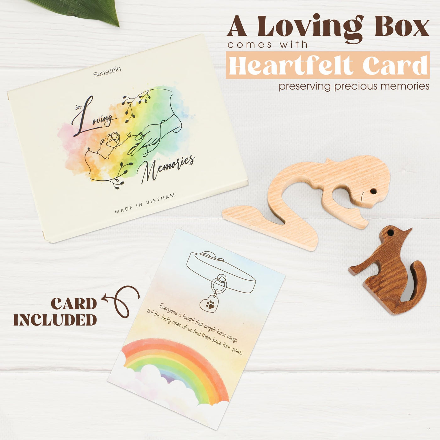 Sensuniq Cat Memorial Gifts, Handcrafted Wooden Cat Tribute Figurine, Gift For Loss Of Cat - Once By My Side Forever In My Heart