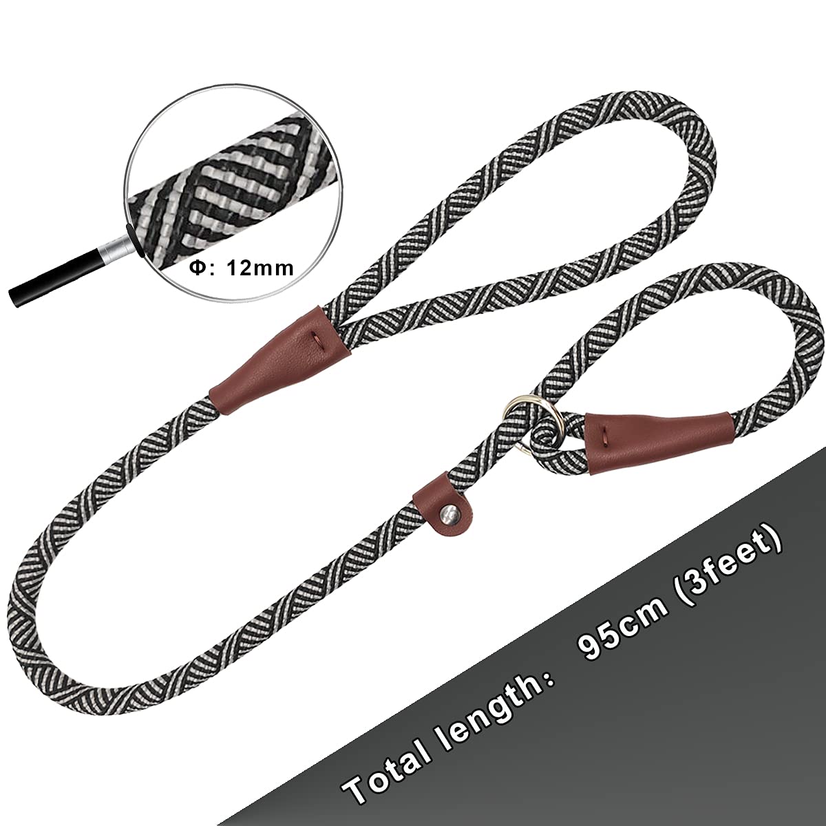 Sepxufore 3 Ft Slip Lead Dog Leash, 1/2 Inch Rope Dog Walking And Training Lead, No Pull Strong Nylon Leash Great For Medium And Large (Black)