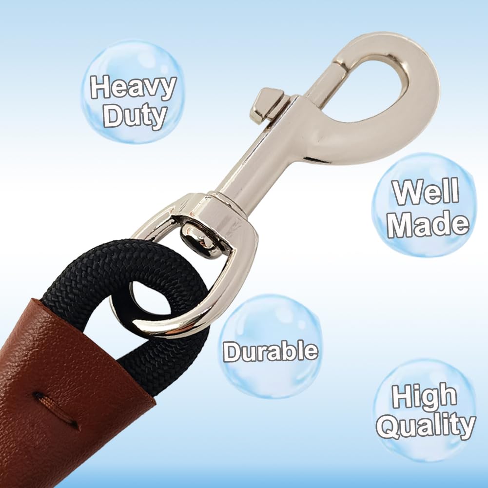 Sepxufore 6Ft/8Ft/10Ft Rope Dog Leash, 1/2 Strong Nylon Climbing Leash With Leather Tailor Connection, Great For Medium And L