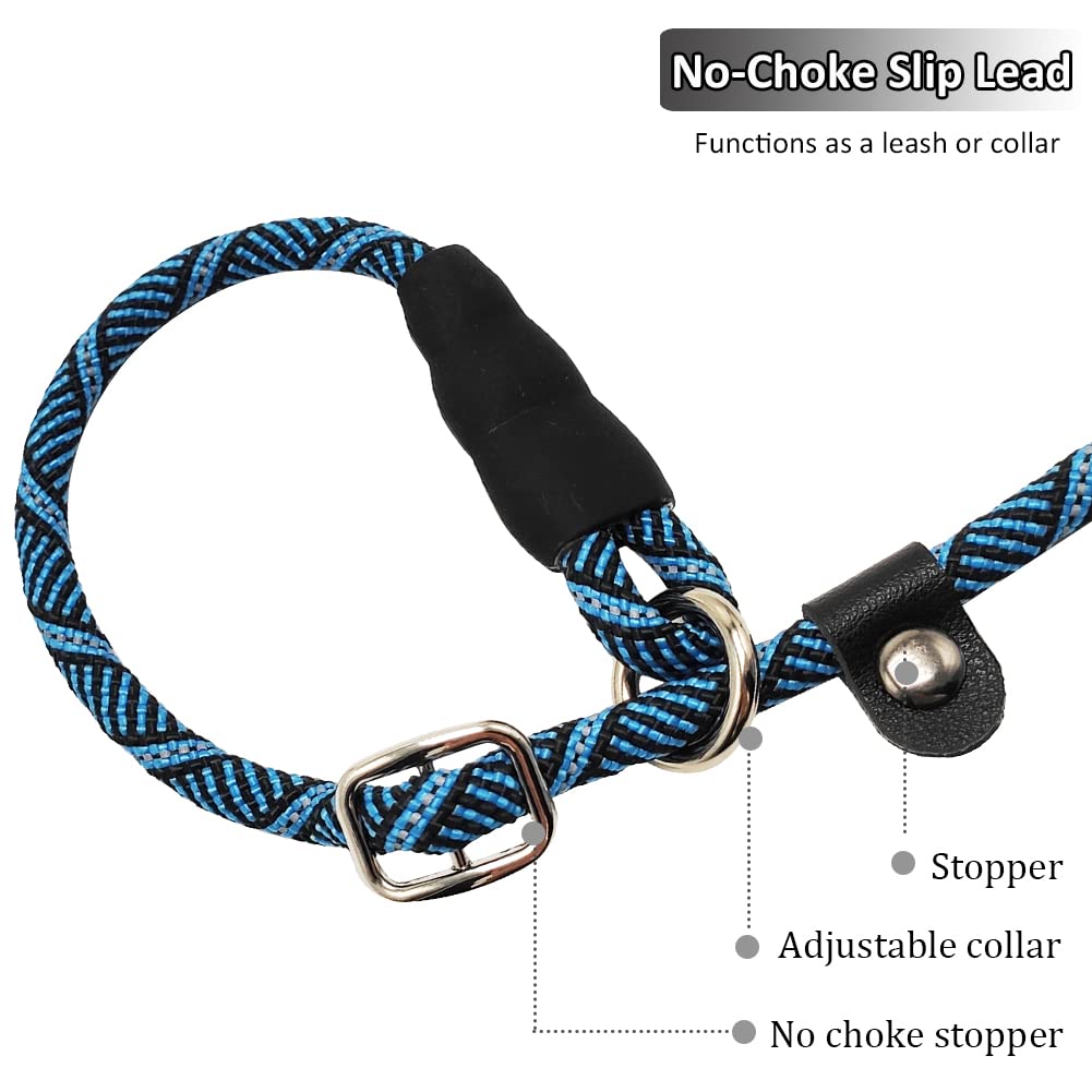 Sepxufore Reflective Long Dog Leash Slip Lead, No-Choking 12 Ft/20 Ft/30 Ft/50 Ft Rope Training Lead For Medium Dogs Small Puppy Pets Behavior Active Playing (12Ft, Blue)