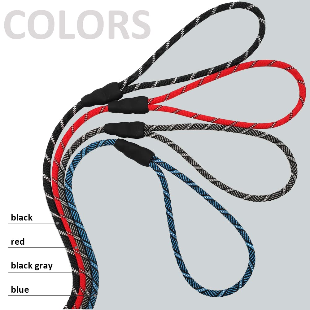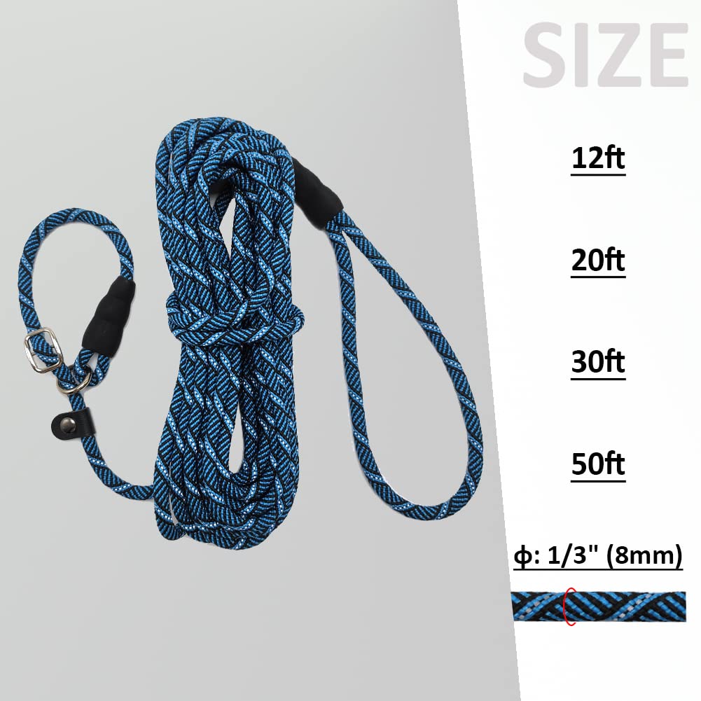 SEPXUFORE Reflective Long Slip Lead Dog Leash Anti-Choking 12FT/20FT/30FT/50FT Rope Training Leash for Medium Dogs Small Puppy Pets Color: Black, Red, Blue, Blackgray Lightweight & Durable: This rope is super strong high density nylon, comfortable, portable and lightweight. Advantages: Reflective for night Safety: One highly reflective stitiching will keep you and your dogs visible and safe on late-night walks. This leash is not only great for training a dog, but can be used in all sorts of other outdoor activities like walking, jogging, backpacking, camping, hiking or wherever full control is necessary. Easy to clean and dry. Gentle training leash: The metal lock tab and leather slider combination can works great to prevent choking your lovely pets. One size fits all: Equipped with adjustable loop, don’t need any collar or harness, adjustable to fit any neck size, simple and easy of use. Our rope slip dog leash is an excellent gift choice for any dog lover, boy, girl for Birthday, Christmas or other occasion.