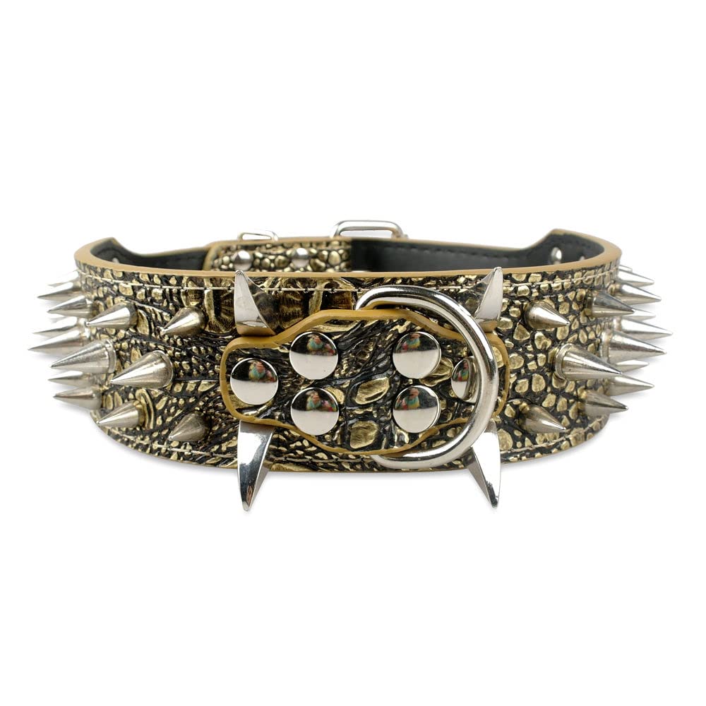 Material: Faux Leatherstudded Spikes Studs Cool Design As The Pictures Show2Inch Wide, 5 Holes Adjustable;Small Size For 2 Inch Wide, 20 Inch Long (5*51Cm) Neck 15-18 Inchmedium Size For 2 Inch Wide, 22 Inch Long (5*56Cm) Neck 17-20 Inchlarge Size For 2 Inch Wide, 24 Inch Long (5*61Cm) Neck 19-22 Inchx-Large Size For 2 Inch Wide, 26 Inch Long (5*66Cm) Neck 21-24 Inchnote: Before You Order,Be Sure Your Dog'S Neck Is Suitable For This Size (That'S Very Important).