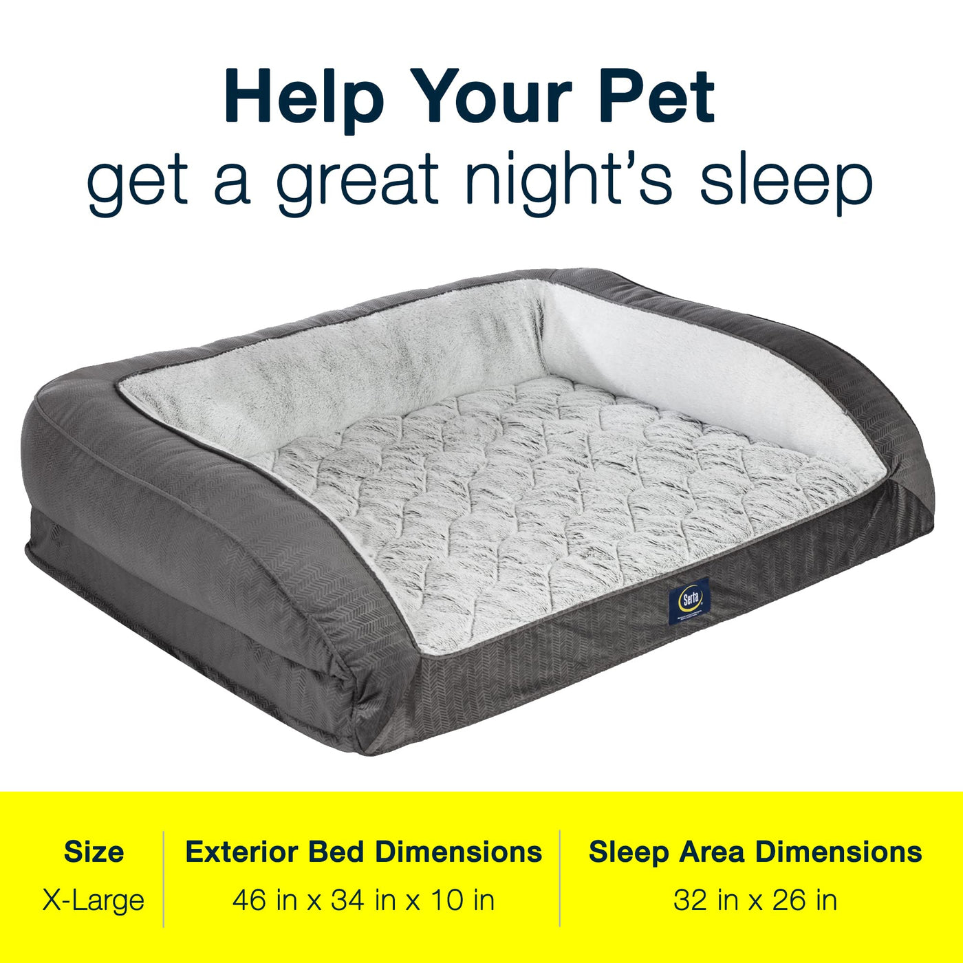 Serta Orthopedic Supportive Foam Quilted Couch Dog Bed With Soft Bolsters (Slate Gray) X-Large