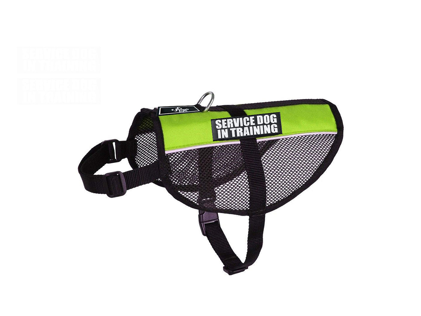 Q: What sizes are available for the Service Dog in Training mesh vest harness?A: The Service Dog in Training mesh vest harness is designed for dogs with a girth measurement of 15-20 inches. It is important to measure your dog before ordering to ensure a proper fit.