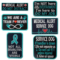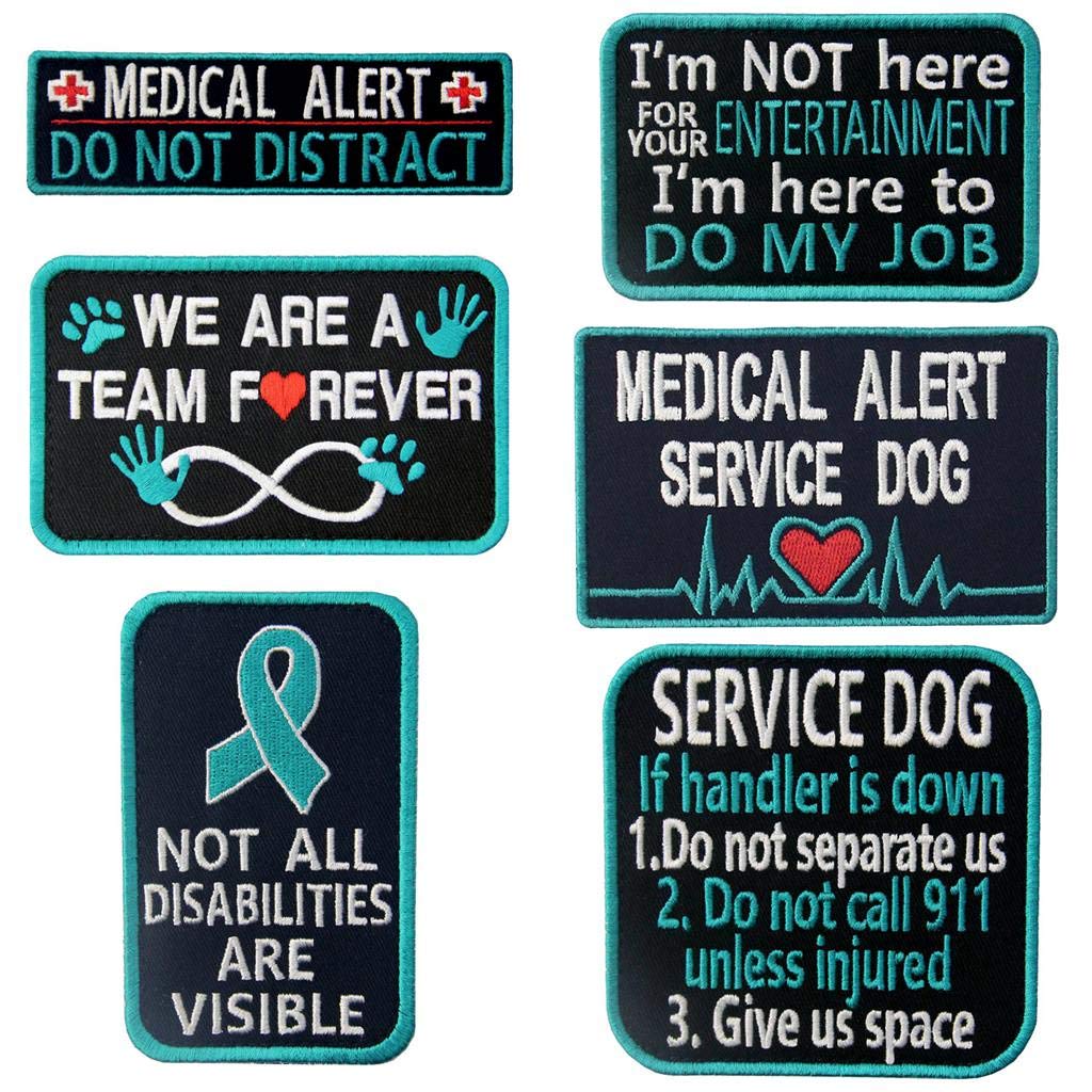 Service Dog Medical Not All Disabilities Are Visible Alert Vest/Harnesses Morale Tactical Patch Embroidered Badge Fastener Hook & Loop Emblem, 6 Pcs, Blue