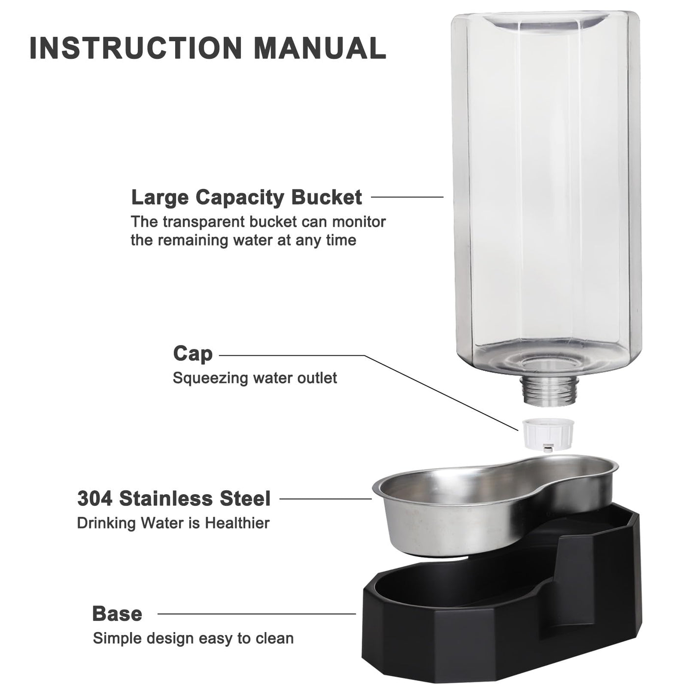 Sfozstra Automatic Pet Water Dispenser With Stainless Steel Bowl, Gravity Waterer, Angular Water Feeder For Small To Large Dogs