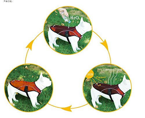 BENEFITS: LIGHTWEIGHT: nylon material lightweight and super soft, no pull and for full range of motion EASY ON AND OFF: dog cooling jacket with buckle closure helps you easily put on and take off for your dogs PROTECTION: protects the dog from hot days MATERIAL: shell, 100% Nylon ; lining, 100% Polyester OCCATIONS: cooling vest for walks, running, training sessions, adventure, outdoor, dog shows Feature: Twice the absorption capacity than general towel SIZE: please check the size information carefully CARE: Do not bleach, Do not tumble dry, Do not iron, Do not dry clean, wash with cold water, hand or machine wash, hang dry