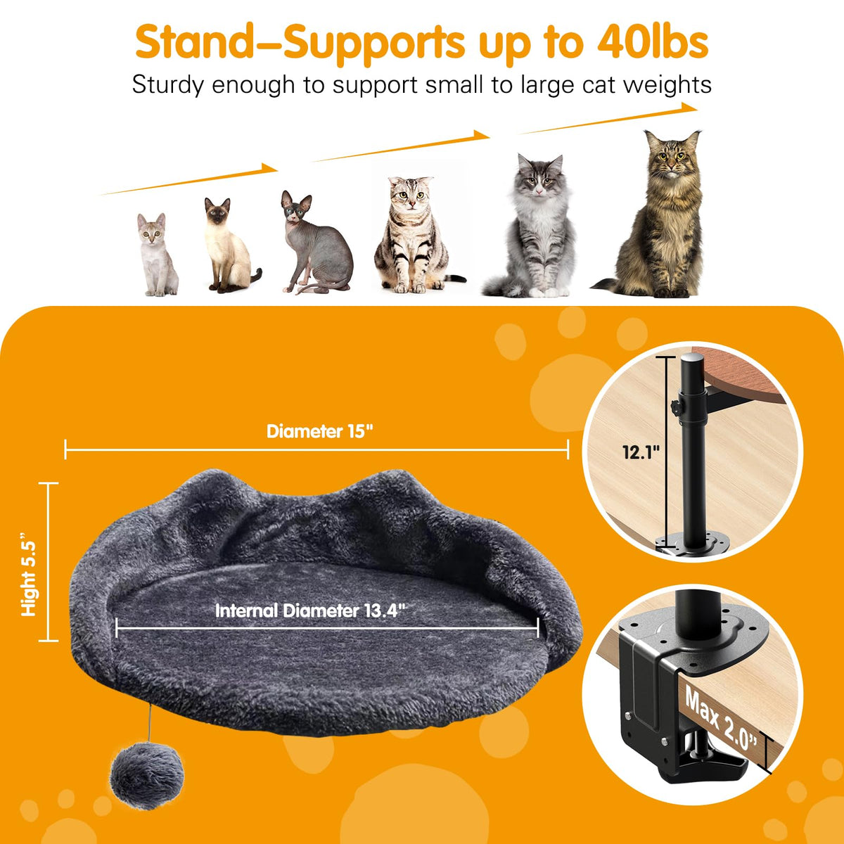 Work And Pet Care In One Place Our Cat Desk Bed Offers The Perfect Solution For Pet Owners Who Want To Keep Their Feline Companions Close While Working. This Innovative Product Provides Your Cat With A Cozy And Elevated Resting Spot Right On Your Desk, Ensuring They Stay Nearby Without Disrupting Your Workspace. Enjoy The Comfort Of Having Your Pet Close While Maintaining Productivity. Height Adjustable Arm The Cat Desk Bed Features An Adjustable Arm That Extends Up To 12 Inches, Allowing Your Cat To Comfortably Rest And Observe Their Surroundings. This Design Gives Your Cat A Sense Of Control Over Their Environment, Making Them Feel Secure And Content. 360 Rotation The Bed Rotates 360 Degrees Horizontally, Enabling You To Adjust Its Angle To Suit Different Orientations. You Can Easily Lock It In Place When Needed, Ensuring Your Cats Bed Is Always Positioned Perfectly. Detachable And Machine Washable Cat Bed Cover The Soft Faux Fur Fabric Cover Is Detachable And Machine Washable, Ensuring Your Cat Always Has A Clean And Fresh Place To Rest. This Feature Makes Maintenance Effortless And Keeps Your Pets Space Hygienic. Durable And Sturdy Construction Built With A Robust Metal Frame, The Cat Desk Bed Can Support Up To 40 Pounds, Providing Stability Even If Your Cat Jumps Onto It. The Circular Design Measures 13.6 X 13.6 X 4 Inches And Is Covered In Soft Cotton-Linen Fabric, Offering A Comfortable And Durable Resting Spot For Cats Of All Ages. Easy Installation This Product Requires No Drilling Or Modifications To Your Desk. The Clamping Base Comes With A Sponge Pad To Protect Your Desk Surface, And The Sleek Grey Color Adds A Modern, Stylish Touch To Your Workspace. Stylish Furniture Combining Functionality With Elegance, The Cat Desk Bed Enhances Your Workspace While Serving As A Sophisticated Resting Place For Your Cat. Its A Perfect Blend Of Practicality And Aesthetics. Safe And Secure Design Cats Naturally Seek Out High, Secure Spots, And Our Elevated Design Meets Their Instinctual Need For Safety And Comfort. The Wall-Protected Structure Ensures Your Cat Feels Protected And Relaxed While Resting. Space-Saving Solution You Can Rotate The Cats Bed So That It Faces Away From The Desk, Saving Valuable Desktop Space. The Excellent Reverse Support Maintains Its Load-Bearing Capacity, Ensuring Stability And Functionality. Extra Large Support Tablet The Large Support Tablet Enhances The Cat Desk Beds Load-Bearing Capacity While Protecting Your Desktop. This Feature Ensures The Bed Remains Stable And Doesnt Shake, Providing A Secure Resting Spot For Your Cat. Product Details: Material: Robust Metal Frame With Soft Faux Fur Fabric Cover Dimensions: 13.6 X 13.6 X 4 Inches Weight Capacity: Supports Up To 40 Pounds Color: Grey Features: Height-Adjustable Arm, 360 Rotation, Detachable And Machine Washable Cover, Easy Installation, Space-Saving Design Ideal For: Indoor Cats, Multi-Functional Pet Beds, Cat Furniture, Perches, Shelves, And Stands. Cat Desk Bed With Adjustable Steel Frame Elevate Your Workspace And Your Cats Comfort With This Multi-Functional Cat Desk Bed. Its The Perfect Addition To Any Home Or Office, Offering A Stylish And Practical Solution For Pet Owners. Cat Desk Bed, Soft Faux Fur Fabric, Cat Bed, Cat Beds, Cat Beds For Indoor Cats, Cat Shelves, Adjustable Rotating Steel Frame, Pet Bed, Cat Furniture, Cat Perch, Adjustable Bed, Cat Shelf, Pet Beds, Elevated Cat Bed, Cat Furniture For Indoor Cats, Cat Stands For Indoor Cats, Raised Cat Bed, Desk Cat Bed, Cat Bed For Desk, Desk Nest Cat Bed, Supports Up To 40Lbs. Give Your Cat The Comfort They Deserve While Enhancing Your Workspace With The Cat Desk Bed. Order Now And Enjoy The Perfect Balance Of Work And Pet Care!