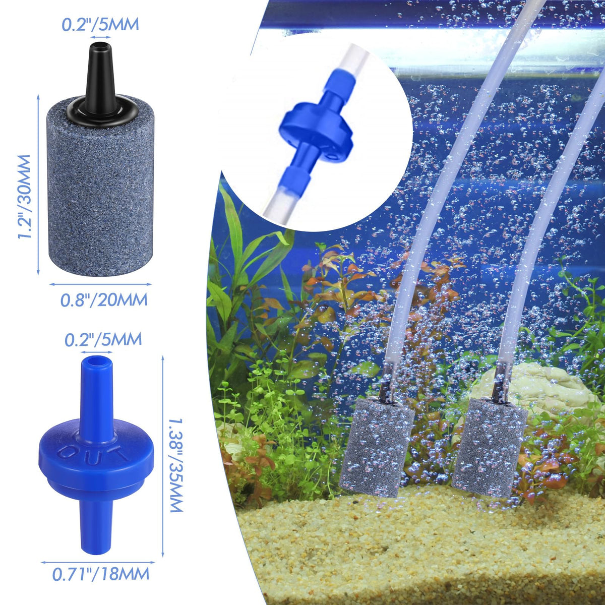Shappy 6.5 Feet Standard Airline Tubing Air Pump Accessories for Fish Tank, 2 Bubble Release Air Stones, 2 Check Valves, 4 Suction Cup Clips, 2 Straight Connectors and 2 T-connectors Features of airline tubing: These air tubes are made of clear and flexible plastic, they are resistant to wear and kink; Moreover, they can be put in salt water or fresh water. Functions of check valve: This check valve can prevent water back into air pump in case of power outage; You can put it in the airline tube between air pump and aquarium water, it is suitable for aquarium and fish tank. Useful air stones: The air stones help add oxygen to your hydroponic growing system and reduce carbon dioxide concentration for your fish tank, aquarium, pond, hydroponic or circulation system; Moreover, they can extend the lifetime of your nutrient solution and supply oxygen for your fish. 2 Different connectors: T-connectors combine 2 inputs together to create 1 output, which is convenient for application with dual outlet pumps; And the straight connectors are applied for mending or extending air hose. Warm notice: The pipe is soaked in hot water to make it become more soft and convenient to install. Package includes: 1 x Standard airline tubing 2 x Bubble release air stones 2 x Check valves 4 x Suction cup clips 2 x Straight connectors 2 x T-connectors