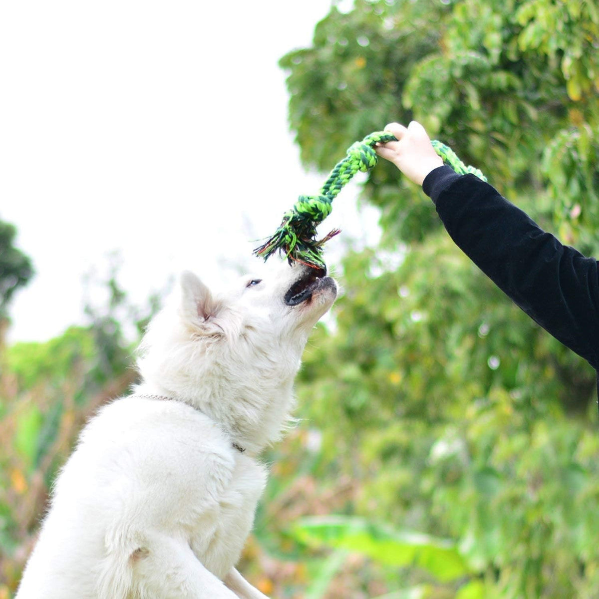 Q: Is this dog rope toy safe for my pet?A: Yes, the SHARLOVY Dog Toy is made from durable cotton fibers that are safe for chewing and tugging. However, it is recommended to supervise your dog during playtime, especially if they are an extremely aggressive chewer.
