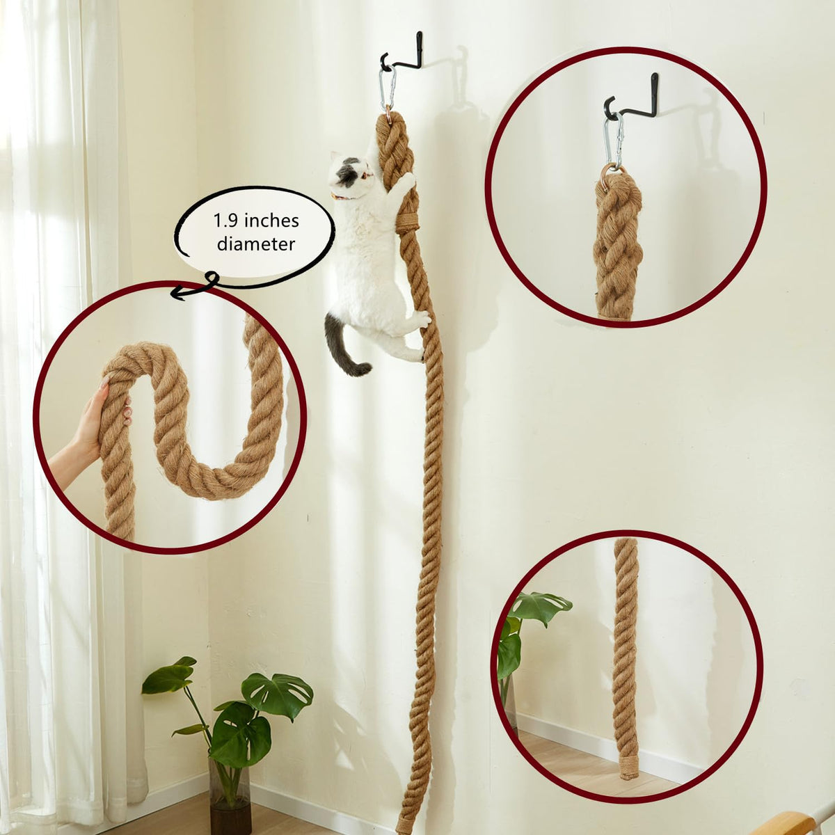 Shengocase 1.9'' X 6.56Ft Cat Climbing Jute Rope With Hook, Wall Mounted Furniture For Indoor And Outdoor Cat (6.56 Feet)