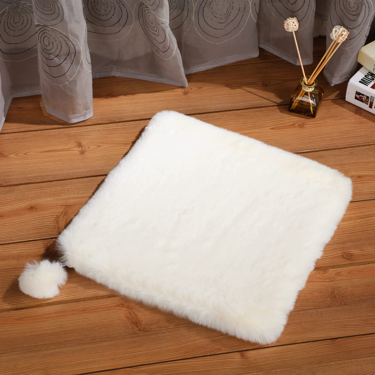 ?DELUXE PET CUSHION?Made with high quality soft faux rabbit fur with a interlayer high density foam and 1.64'' thick it's just incredibly soft like silky candy floss it provides the best warmth and smooth touch for your feline friend.