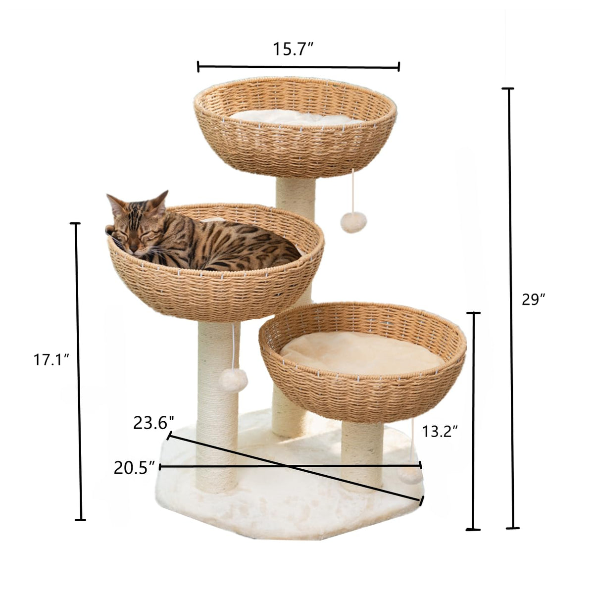 Shengocase Cat Tree Tower With Rattan Wicker Basket, 3 Handwoven Large Nest Baskets Bed, Window Perch For Large Cats Up To 20Lbs