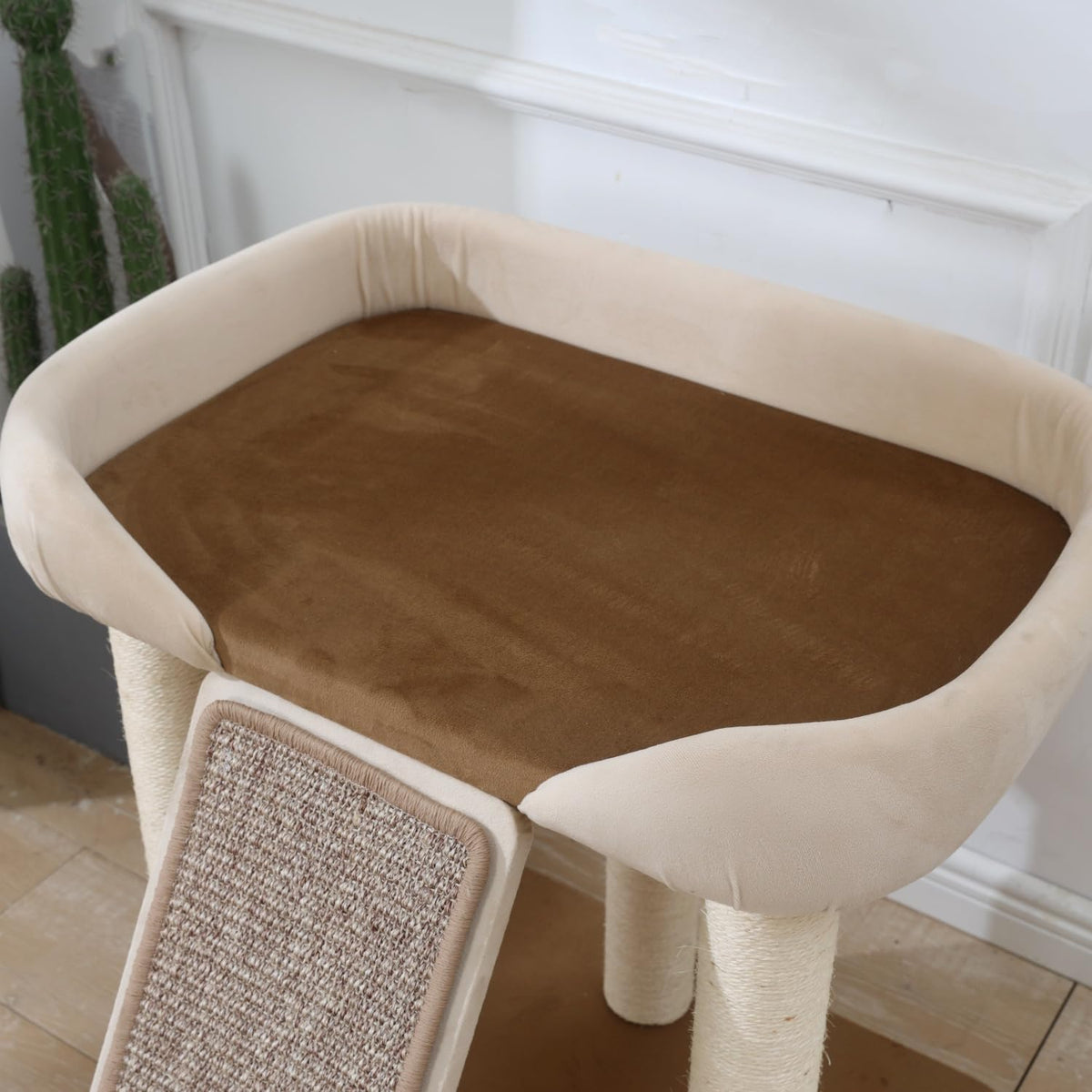 Transform your living space into a feline paradise with this modern cat tree tower designed specifically for Maine Coons and multiple cats. The extra-large platform perch bed provides ample space for your larger feline friends to stretch out and relax comfortably. The innovative tilted design features an angled scratching post ramp that lets cats exercise their natural scratching instincts while the couch-style sofa offers a cozy lounging spot. Perfect for households with multiple cats, this thoughtfully engineered structure allows several cats to play and rest simultaneously without feeling cramped. The contemporary design seamlessly blends with your home decor while providing all the functionality your cats need for climbing, scratching, and perching. Give your cats their own dedicated space to explore and unwind with this spacious, well-constructed cat tree tower.