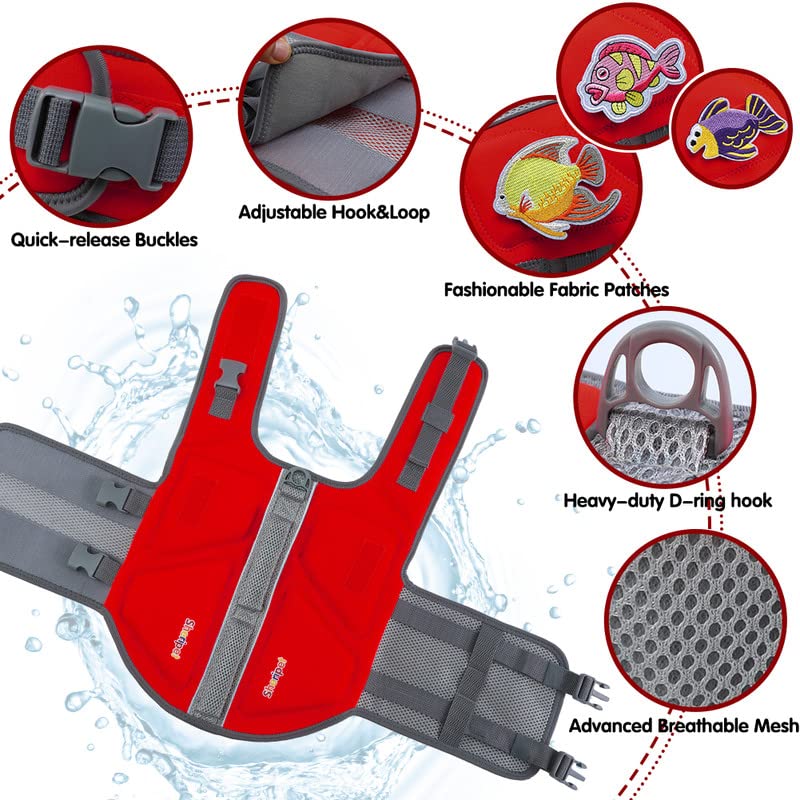 Sheripet Dog Life Jacket For Large Dogs, Dog Life Vest For Swimming Boating With Fashion Fabric Patches, Pet Safety Lifepreserve