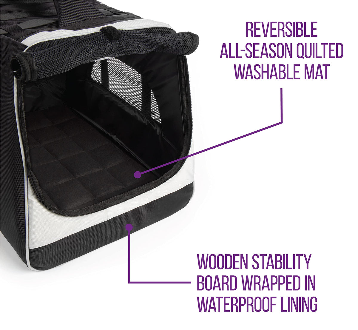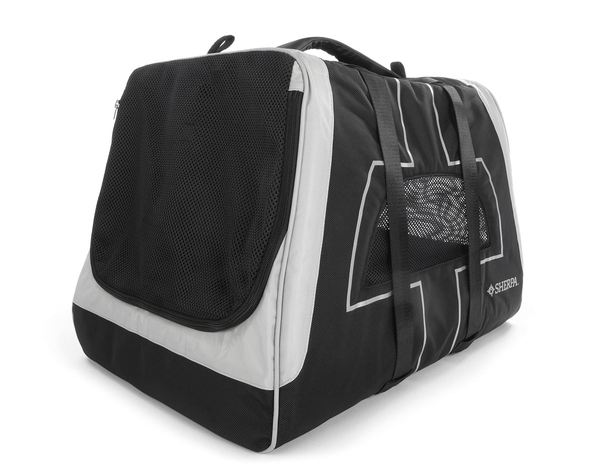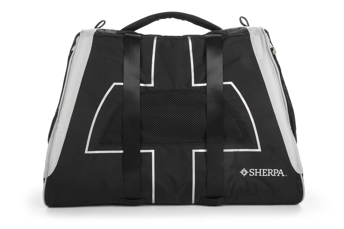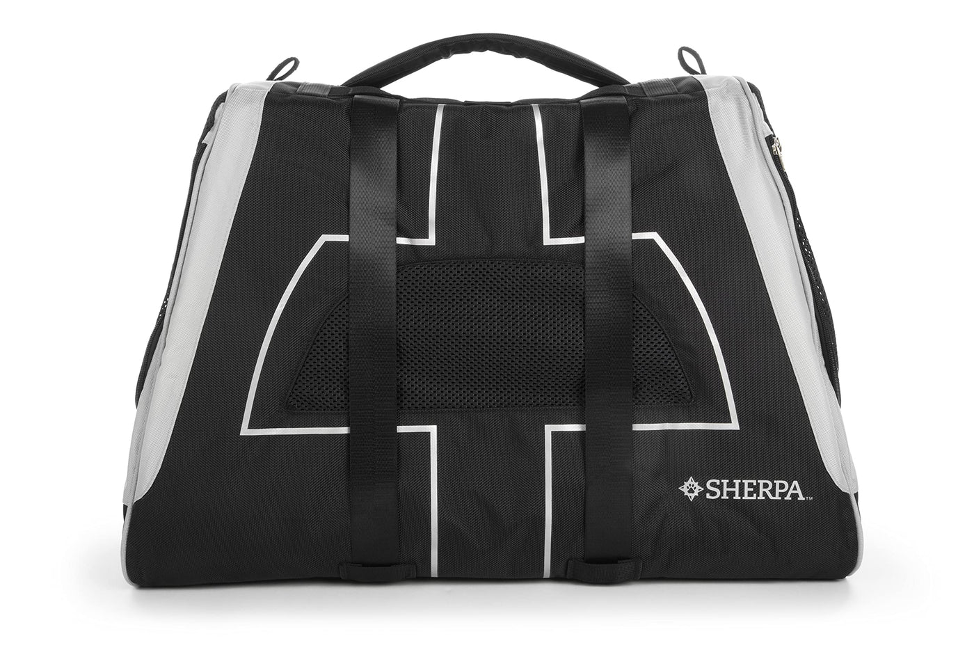Sherpa Forma Frame Pet Carrier is a versatile and stylish pet carrier can be carried by hand, over your shoulder, as a back pack, or fixed to your car seat using the special straps provided. The Medium size is approved for most airline and is part of our Guaranteed On Board program. Designed for in-vehicle safety and comfort. Made for pets and owners on the go together! It features claw-proof mesh windows and doors and a safety leash to secure your pet safely. The new Forma Frame system is designed with a solid structure for ultimate companion comfort and safety. The Forma Frame metal support can be quickly folded for an easy storage. It also features a new integrated handle and buckles. The Forma Frame uses a proprietary connection system adding structural integrity, component durability and stream-lined utility. Sherpa Travel gives pet parents the best of all worlds: innovative products, stylish designs, and exceptional value with a variety of travel carriers, leads, mats, straps, to meet a pet's and pet parent's needs for travel. Sherpa products are designed to meet child safety standards. Please read all packaging instructions, warnings and cautions upon receipt. Packaging contains small parts, discard after opening.