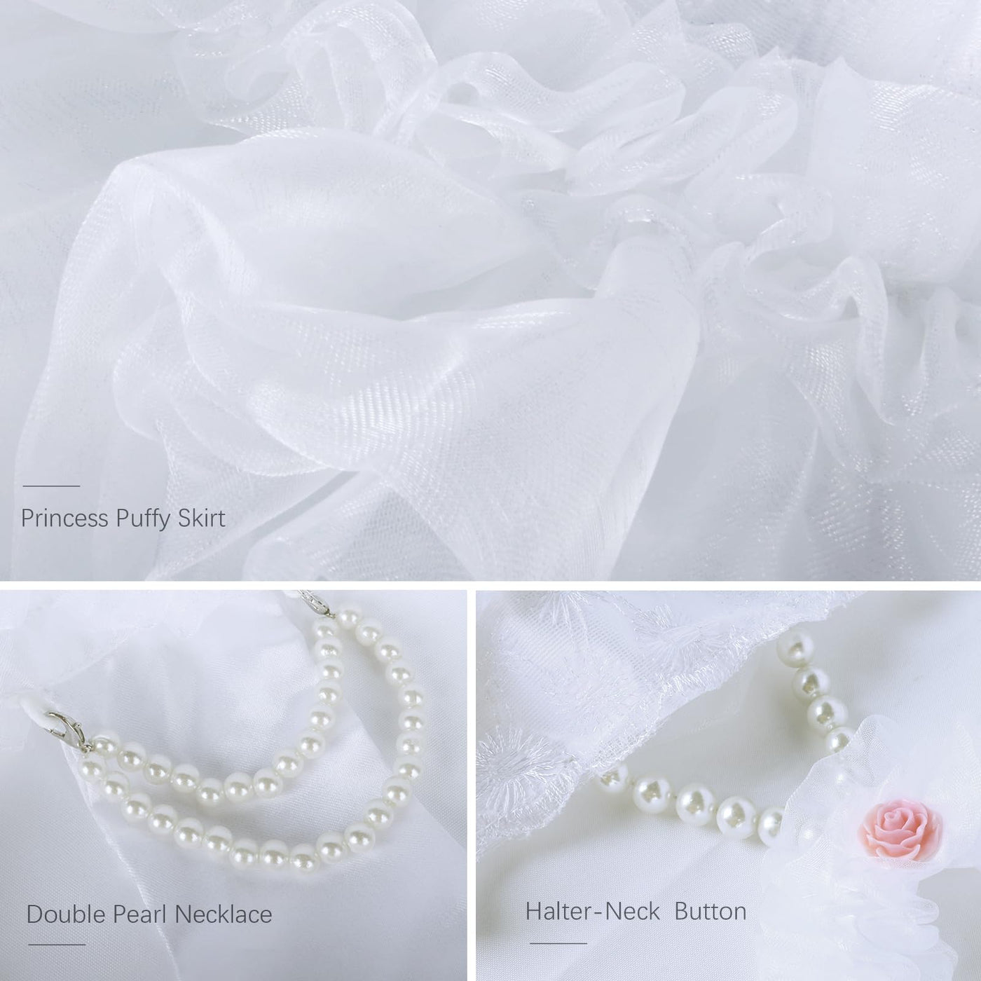 Shiaomin Dog Wedding Dress Bride Outfit With Pearl Necklace And Rose Pet Princess Dress Apparel For Puppy Dog Cat (Large)