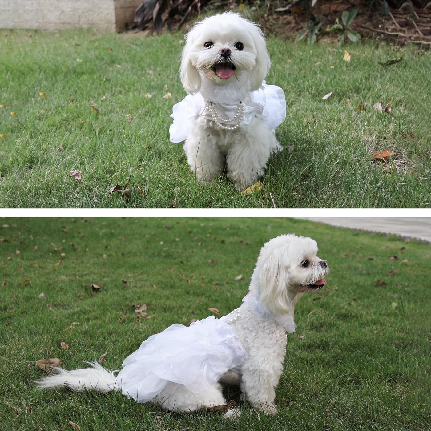 Q: What material is the dog wedding dress made of?A: The dog wedding dress is made of high-quality polyester fiber, which provides a soft and comfortable feel for your pet, making it ideal for special occasions like weddings and parties.