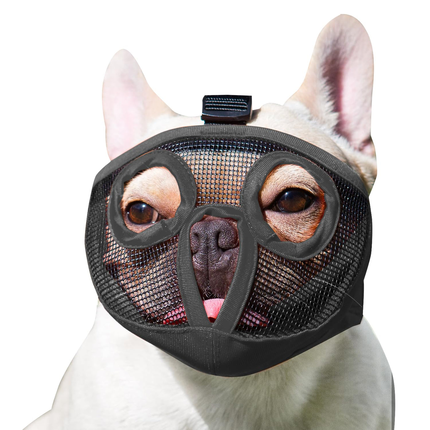 Short Snout Dog Muzzles- Bulldog Muzzle Breathable Mesh Dog Mask For Biting Chewing Training Licking Grooming (Black, L(Head 15.