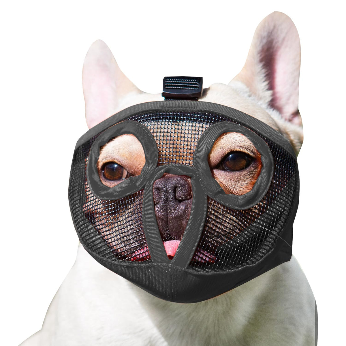 Short Snout Dog Muzzles- Bulldog Muzzle Breathable Mesh Dog Mask For Biting Chewing Training Licking Grooming (Black, S(Head 9.1