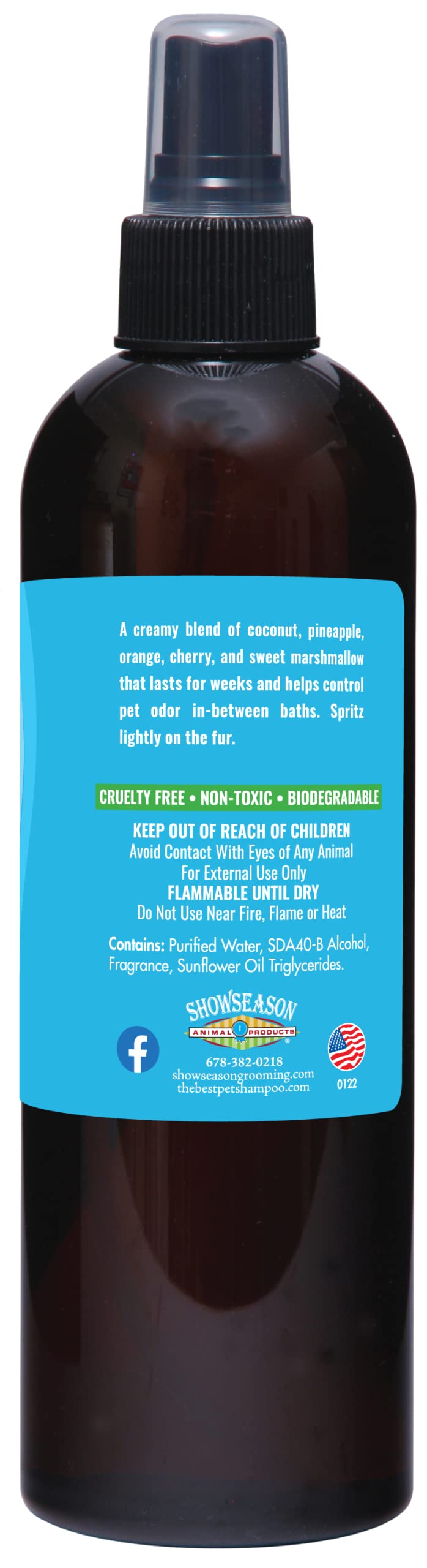 Our Scent Of Coconut, Pineapple, Orange, Cherry, And Marshmallow Is Great At Controlling Pet Odor Between Baths, Giving The Coat A Fresh, Clean Aroma That Lasts For Weeks Without Overpowering. You Can Kiss Messy Oily Sprays Goodbye; Spritz Using The Easy-To-Use Non-Aerosol Spray As A Finishing Touch For Your Just-Groomed Pet, Then Sit Back And Enjoy The Long-Lasting Scent And Endless Snuggles! Professional Grade Quality Is All We Deliver, So Your Pet Can Enjoy A Great-Smelling Product That Is Safe For Them And Their Environment.