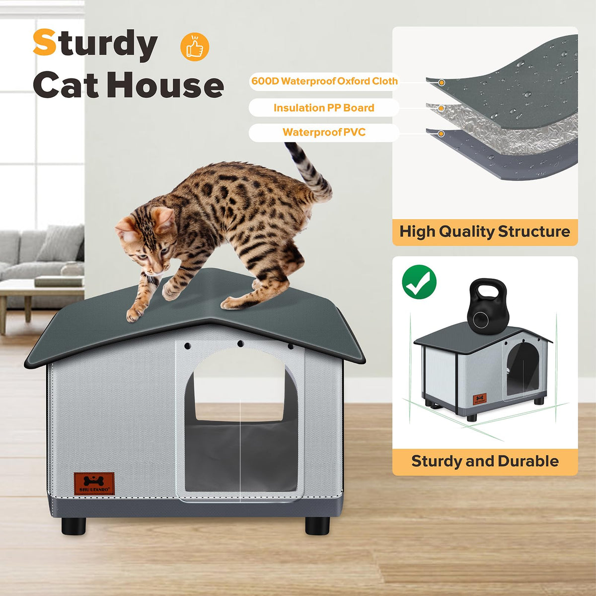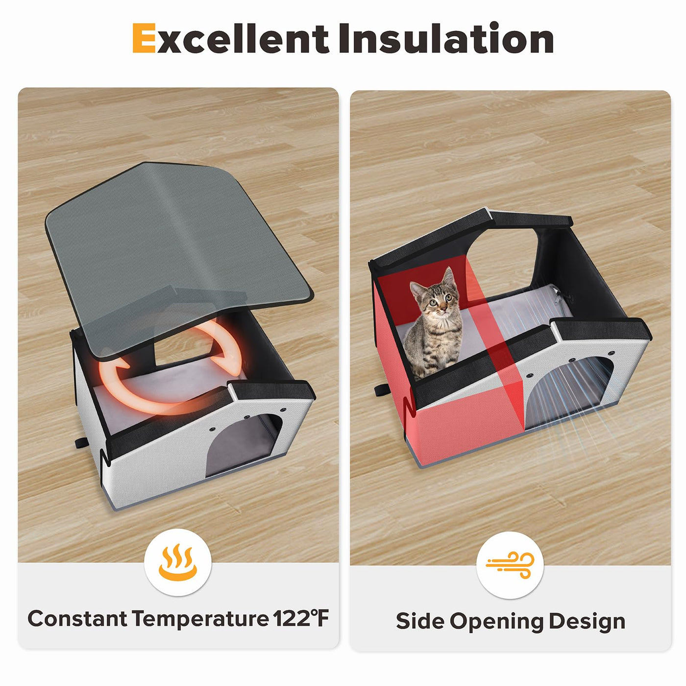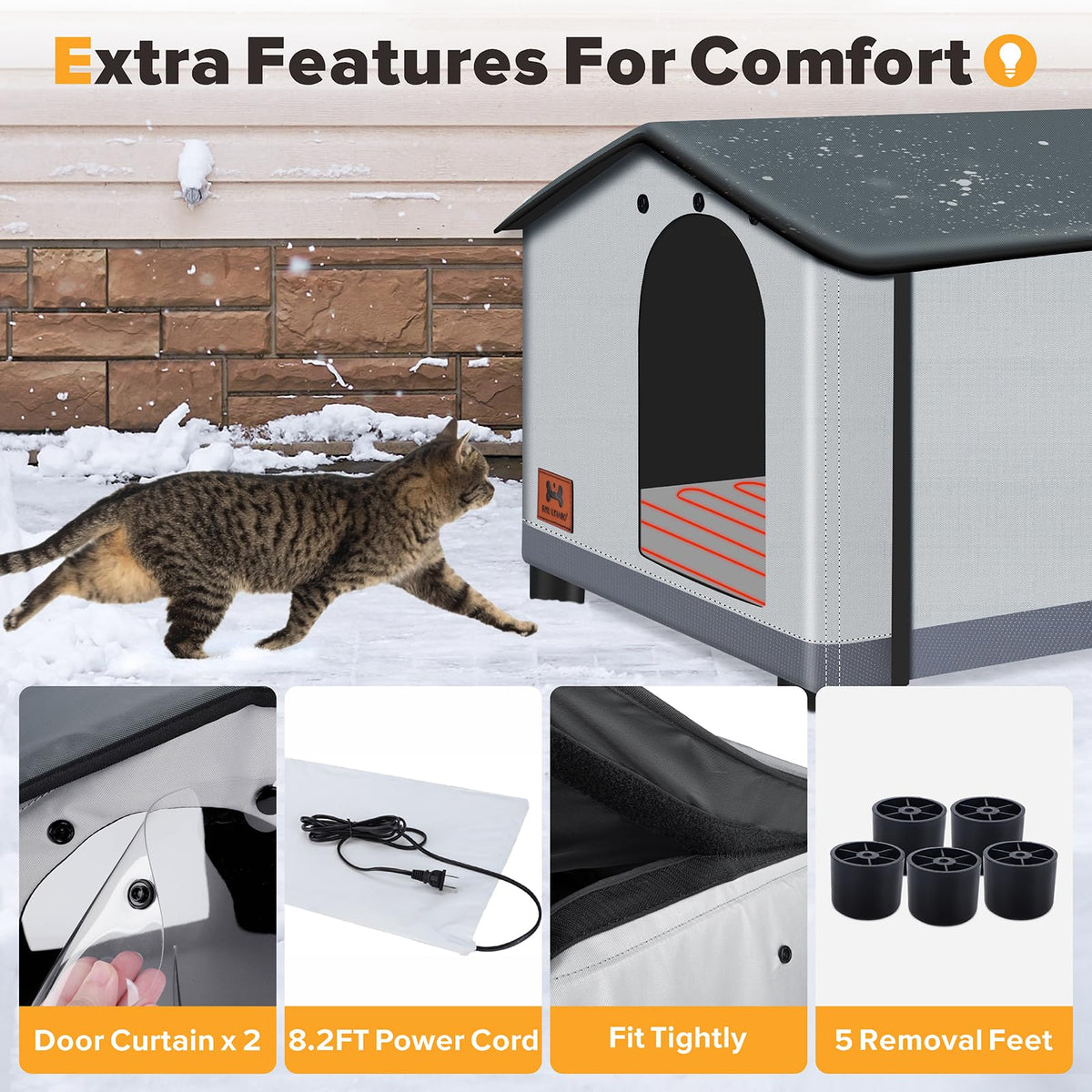 Shu Ufanro Insulated Heated Cat House Indoor/Outdoor, Elevated Cat House With Heated Pad For Winter, Outside Weatherproof Shelte