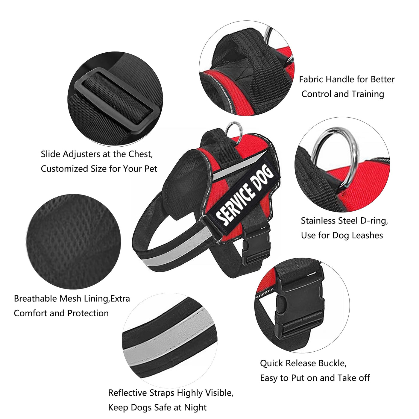 We Are Committed To Providing Our Customers With Good Products And The Best Shopping Experience If You Encounter Any Problems Or Are Not Satisfied In Any Way, We Will Provide The Best Solution And All Issues Will Be Resolved Within 24 Hours Product Features And Adventures: ? High Quality Durable Nylon Material ? Breathable And Soft Sponge Padding ? ? No Pull,Choke-Free,Easy Walk ? A Sturdy Fabric Handle For Control ? ? D- Rings For Attaching Leash ? Adjustable Neck And Chest Girth ? ? Easy To Put On And Take Off ? Reflective Strips Easy View At Night ? ? Service Dog Vest Suitable For Small Medium Large Breed Dogs ? ? Perfect For Daily Walking, Running, Hiking, Training, Hunting ? Package Included: 1 X Service Dog Vest,2 X Service Dog Patches,2 X In Training Patches,2 X Security Patches Easy On And Off Protect Your Pet Dogs' Trachea Help The Dog Learn No Pull, Good For Dog Training And Behavior Control Upgrade All-Round Frontal Reflective Safety Strips And Stitching Can Ensure Maximum Nighttime Visibility And Presence This Service Dog Harness Is Designed For Service Dogs, Search Dogs, Survey Dogs, Guide Dogs And Emergency Rescue Dogs Recommend For Labrador, Husky,Boxer, German Shepherd, Golden Retriever, Border Collie, American Pit Bull Terrier, Bulldog And Etc Using Instructions: 1. Unbuckle: Unbuckle The Chest Straps. 2. Put-On: Slide Your Dog'S Head Through The Front Opening. 3. Adjust: Adjust The Neck And Chest Straps Accordingly To Fit Your Dog'S Body. 4. Secure: Buckle Up The Chest Using The Fast-Release Buckles.