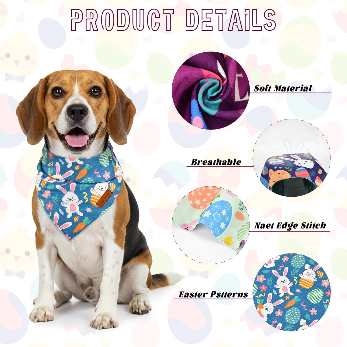 4-Pack Dog Easter Bandana Pet Spring Bandanas Puppy Easter Costume Outfit Pet Reversible Easter Bunny Bandanas Scarfs With Spring Flowers, Rabbits, Easter Eggs Patterns For Small Medium Large Dogsdress Up Your Furry Friends On Easter, Let Them Enjoy The Festivity With You.Product Features- Holiday Themed Patterns: The Puppy Bandanas Feature The Vivid Colors Of Spring, Adorned With Prints Of Rabbits, Carrots, Easter Eggs To Capture The Essence Of The Festival;- Reversible Design: These Cute Dog Bandanas Are Printed With Different Patterns On Both Sides With Excellent Sewing Process, Stitch Neatly, No Excess Thread, So That Both Sides Can Be Used;- Soft And Lightweight: The Easter Pet Scarves Are Made Of Polycotton, Soft And Lightweight, No Restrained Feeling To Wear.Product Specification-Material: Polycotton, Soft, Breathable And Lightweight.-Size:These Cute Puppy Bandanas Can Be Folded To Meet Your Pets Size, They Are Suitable For All Cats And Almost All Breeds Of Dogs.47*47*70Cm/ 18.5''*18.5''*27.6''-4-Pack Pet Spring Bandana: You Will Receive 4 Different Style Easter Pet Scarves In Every Package.Warm Note-Please Allow 0-1/2Inch Difference Due To Manual Measurement And Elastic Fabric.-Due To Shooting Light Or Angle, Actual Color May Vary Slightly From Image.