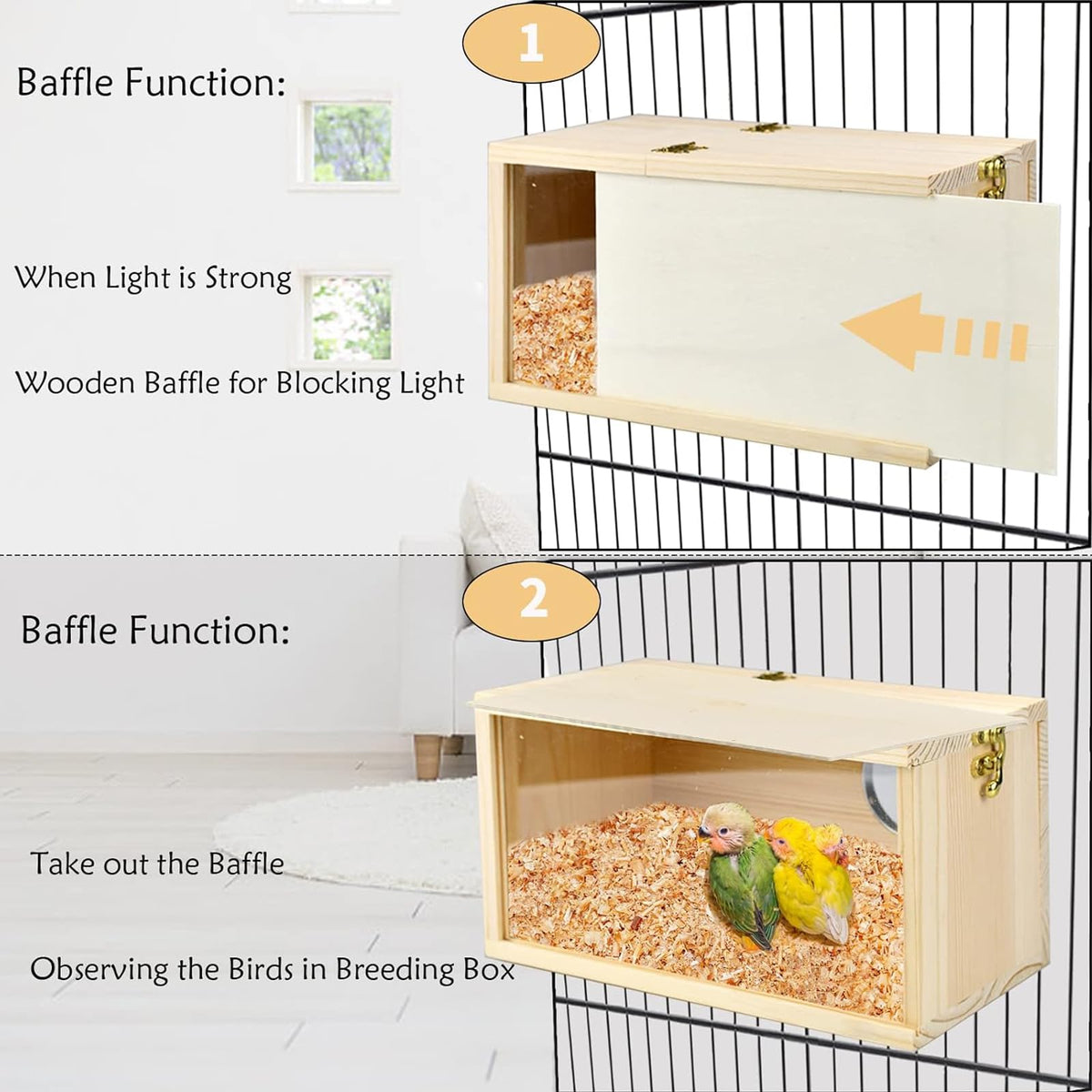 ShuRung Parrot Nesting Box Cockatiel Nesting Box Bird Breeding Box House Handcrafted Wooden Acrylic Transparent Bird Box with De