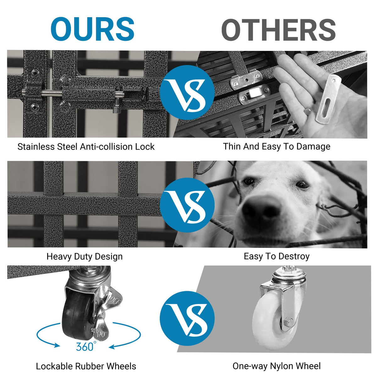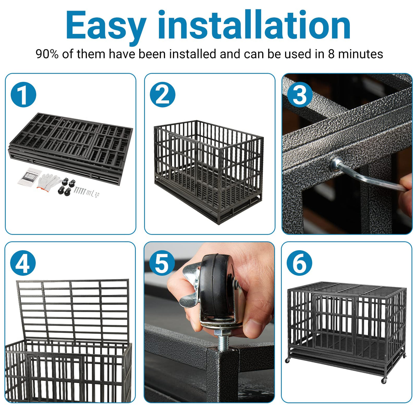 Shushim 48 Inch Heavy Duty Dog Crate Kennel With Wheels, High Anxiety Indestructible Dog Crates For Large Dogs, Xl Xxl Extra Lar