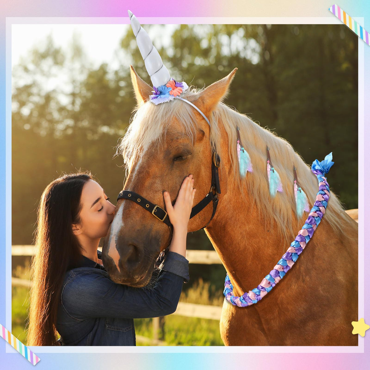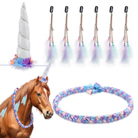 Shyyween 8 Pcs Horse Costumes for Horses to Wear, Unicorn Kit, Include Neck Wreath & 6 Mane Feathers Clip in Hair Extensions Hor